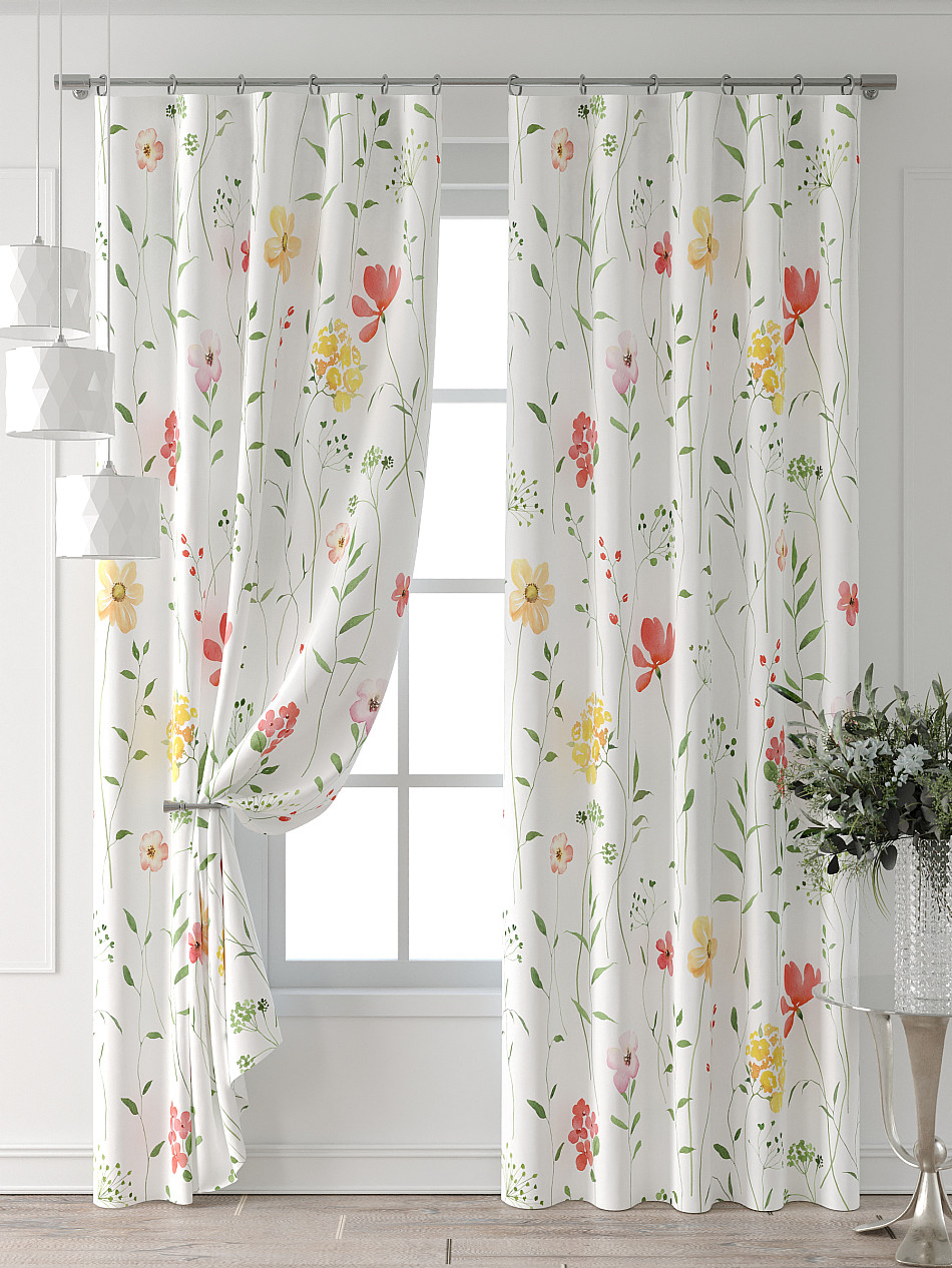 Портьера 2 шт. Подхват - доп.услуга. Комплект штор из легкой портьерной ткани (габардин) оформлен печатным рисунком. Печатный рисунок дает широкие возможности обновить интерьер фактически нет требуя ремонта за счет огромного выбора. Ткани с печатным рисунком безопасны и не содержат токсичных веществ. Не смотря на то что, материал легкий, он имеет высокую плотность, мало загрязнятся и не требует особого ухода даже после стирки, что важно для кухонных занавесок. Шторы не выцветают, не растягиваются, превосходно драпируются, образуя струящиеся складки. Прекрасное решение для создания красоты и уюта с помощью уникальных дизайнов.