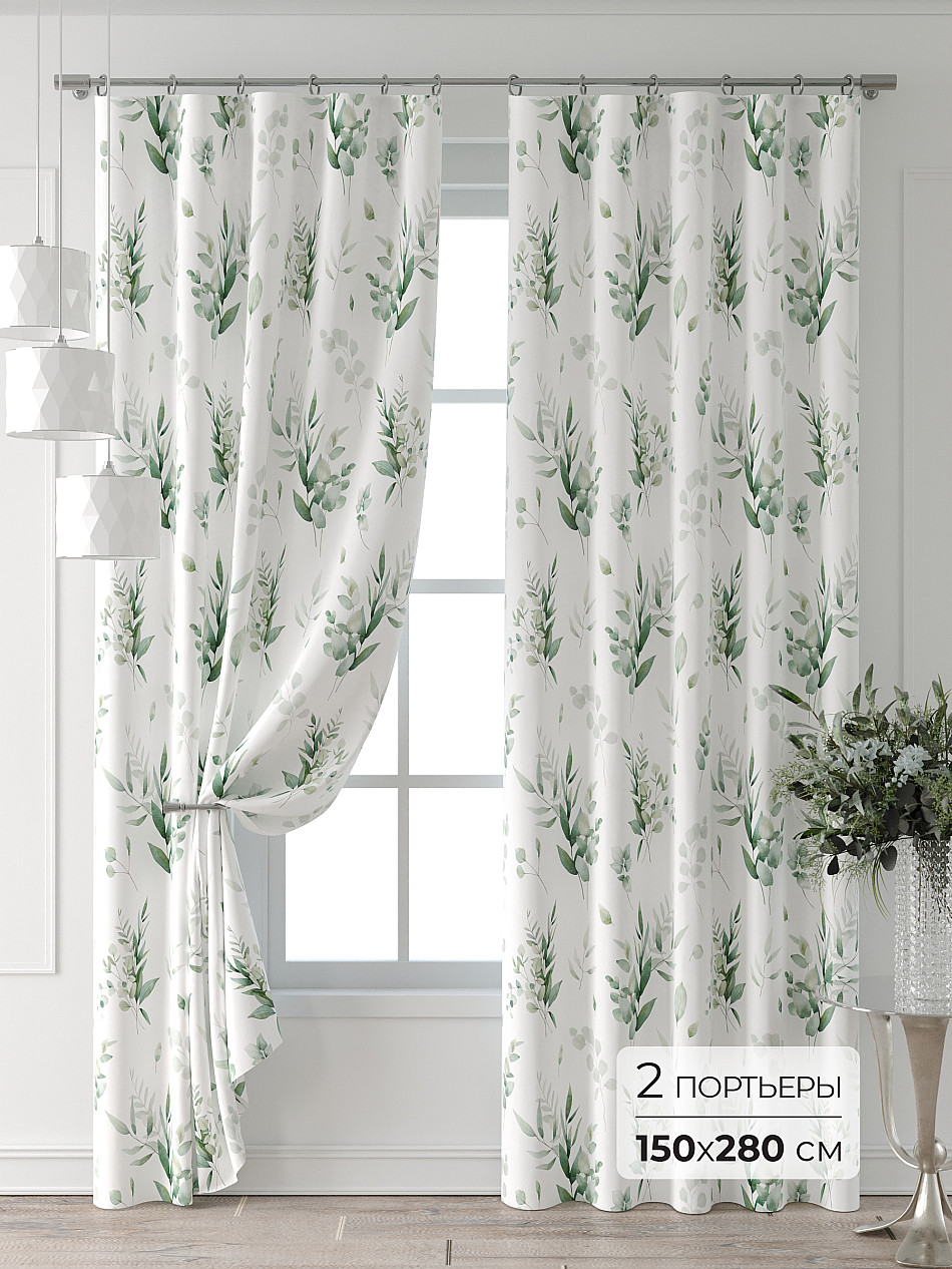 Портьера 150х280 см — 2 шт. ( Изменить высоту) Крепление: шторная лента (крючки) Подробнее