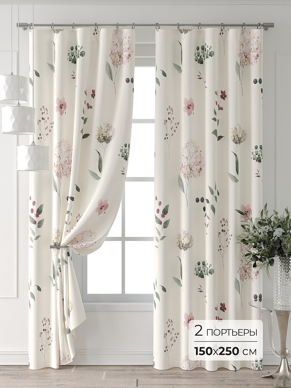 Портьера 2 шт. — 150х250 см. ( Изменить высоту) Крепление: шторная лента (крючки), кулиска Подробнее
