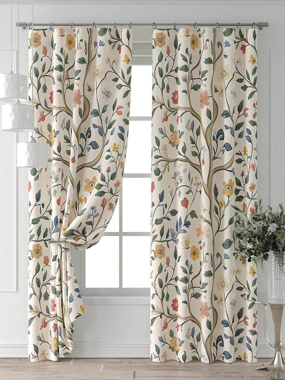 Портьера 2 шт. Подхват - доп.услуга. Комплект штор из легкой портьерной ткани (габардин) оформлен печатным рисунком. Печатный рисунок дает широкие возможности обновить интерьер фактически нет требуя ремонта за счет огромного выбора. Ткани с печатным рисунком безопасны и не содержат токсичных веществ. Не смотря на то что, материал легкий, он имеет высокую плотность, мало загрязнятся и не требует особого ухода даже после стирки, что важно для кухонных занавесок. Шторы не выцветают, не растягиваются, превосходно драпируются, образуя струящиеся складки. Прекрасное решение для создания красоты и уюта с помощью уникальных дизайнов.