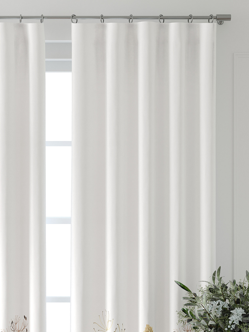 По верхнему краю портьеры пришита шторная тесьма 6 см, с ее помощью затянув узелки от кордовых нитей с обеих сторон и стянув их до нужного размера можно сформировать округлые складки, далее вставить крючки в кармашки и повесить на карниз. Обязательно проверьте кордовые нити – они должны быть надежно завязаны, в противном случае во время стягивания они могут вылететь. Шторная тесьма имеет два ряда кармашков, с их помощью можно регулировать не только длину, но и ширину. Такое крепление подходит для всех типов карнизов.