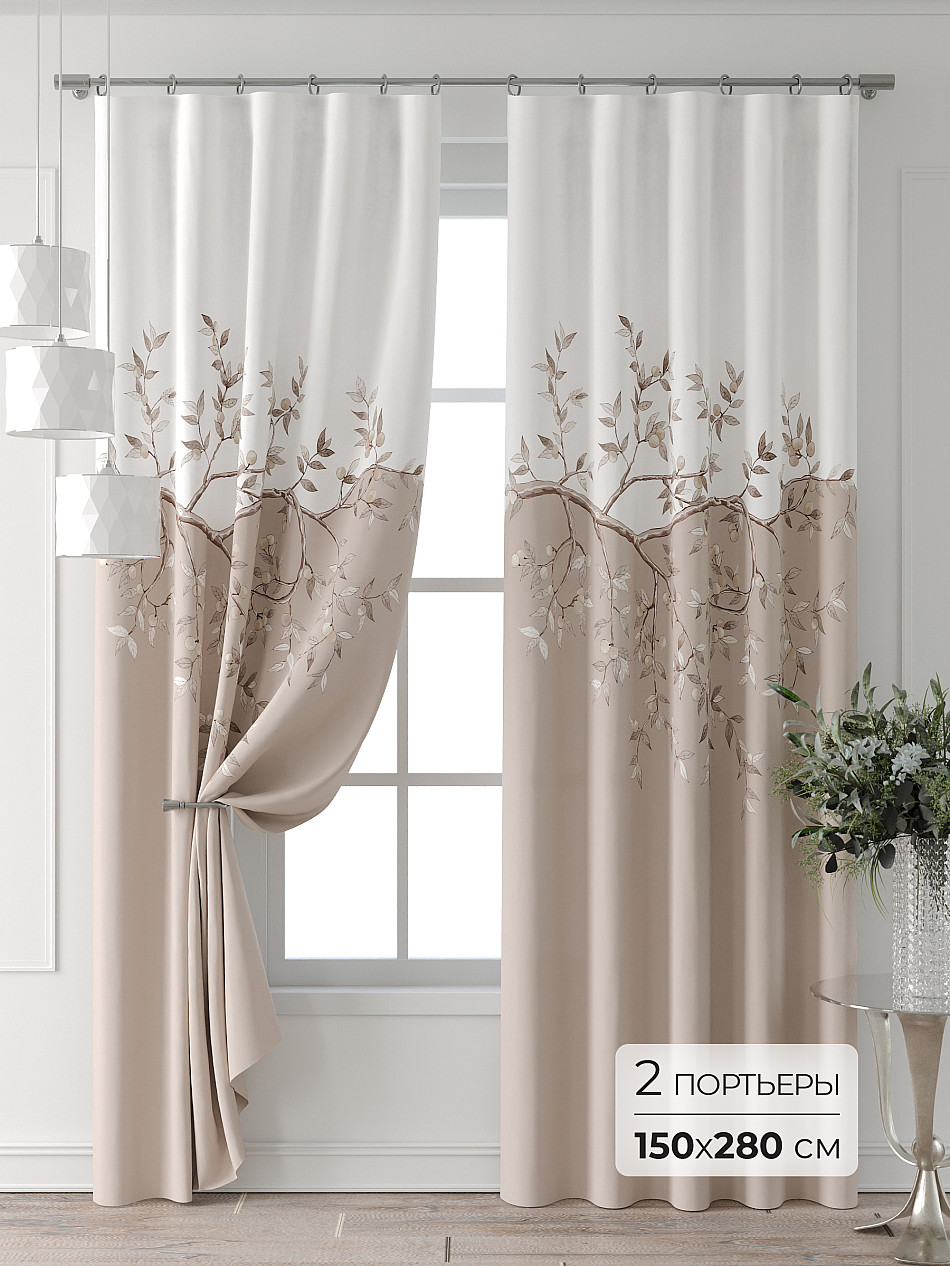 Портьера 2 шт. Подхват - доп.услуга. Комплект штор из легкой портьерной ткани (габардин) оформлен печатным рисунком. Печатный рисунок дает широкие возможности обновить интерьер фактически нет требуя ремонта за счет огромного выбора. Ткани с печатным рисунком безопасны и не содержат токсичных веществ. Не смотря на то что, материал легкий, он имеет высокую плотность, мало загрязнятся и не требует особого ухода даже после стирки, что важно для кухонных занавесок. Шторы не выцветают, не растягиваются, превосходно драпируются, образуя струящиеся складки. Прекрасное решение для создания красоты и уюта с помощью уникальных дизайнов.