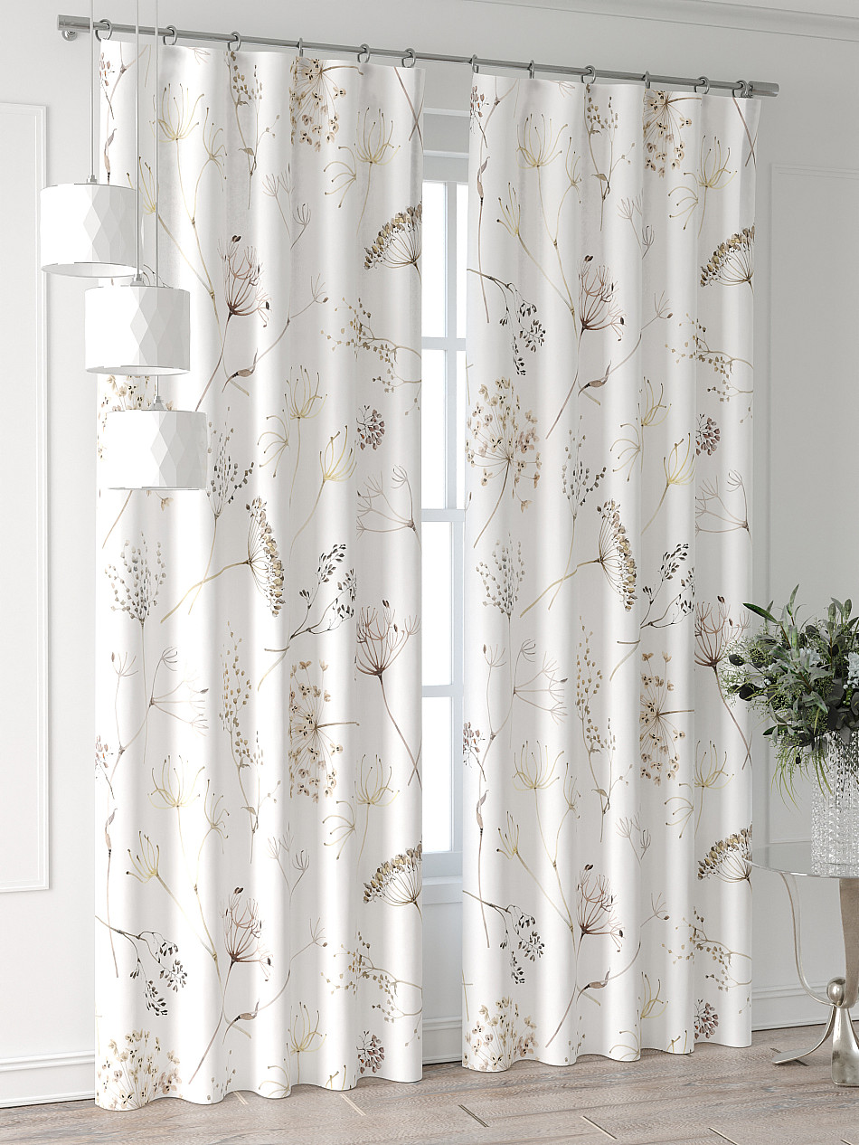 Портьера 2 шт. Подхват - доп.услуга. Комплект штор из легкой портьерной ткани (габардин) оформлен печатным рисунком. Печатный рисунок дает широкие возможности обновить интерьер фактически нет требуя ремонта за счет огромного выбора. Ткани с печатным рисунком безопасны и не содержат токсичных веществ. Не смотря на то что, материал легкий, он имеет высокую плотность, мало загрязнятся и не требует особого ухода даже после стирки, что важно для кухонных занавесок. Шторы не выцветают, не растягиваются, превосходно драпируются, образуя струящиеся складки. Прекрасное решение для создания красоты и уюта с помощью уникальных дизайнов.