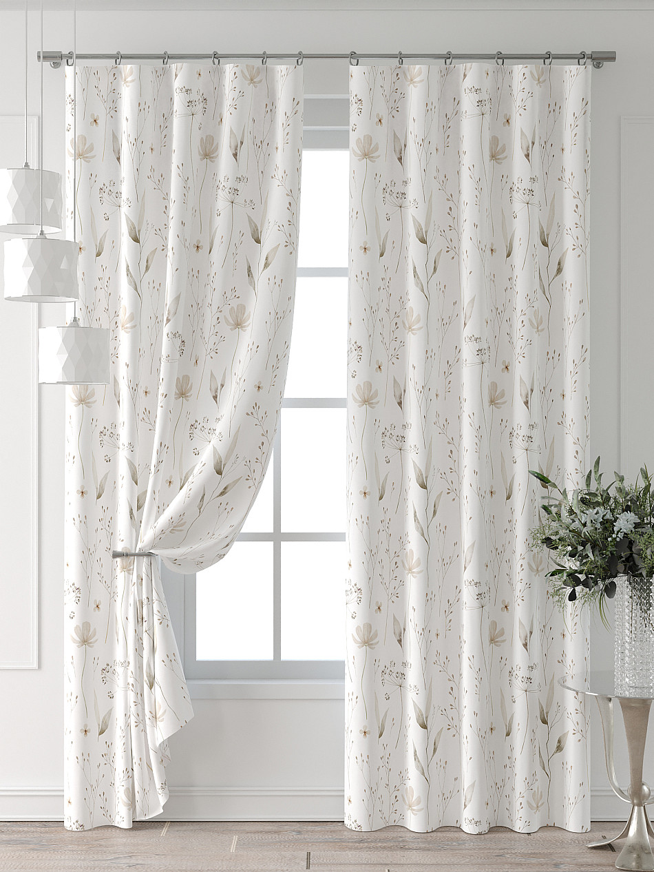 Портьера 2 шт. Подхват - доп.услуга. Комплект штор из легкой портьерной ткани (габардин) оформлен печатным рисунком. Печатный рисунок дает широкие возможности обновить интерьер фактически нет требуя ремонта за счет огромного выбора. Ткани с печатным рисунком безопасны и не содержат токсичных веществ. Не смотря на то что, материал легкий, он имеет высокую плотность, мало загрязнятся и не требует особого ухода даже после стирки, что важно для кухонных занавесок. Шторы не выцветают, не растягиваются, превосходно драпируются, образуя струящиеся складки. Прекрасное решение для создания красоты и уюта с помощью уникальных дизайнов.