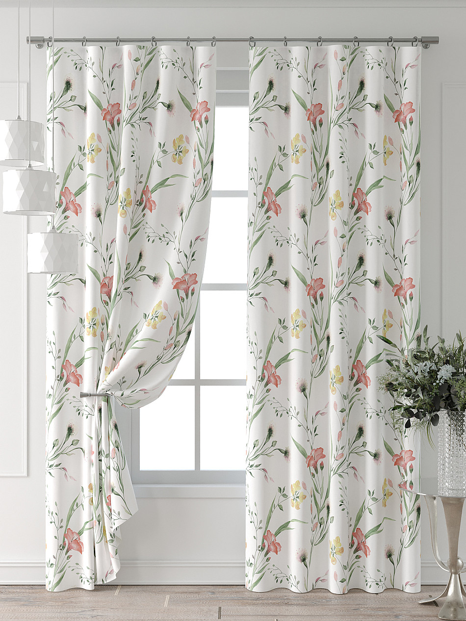 Портьера 2 шт. Подхват - доп.услуга. Комплект штор из легкой портьерной ткани (габардин) оформлен печатным рисунком. Печатный рисунок дает широкие возможности обновить интерьер фактически нет требуя ремонта за счет огромного выбора. Ткани с печатным рисунком безопасны и не содержат токсичных веществ. Не смотря на то что, материал легкий, он имеет высокую плотность, мало загрязнятся и не требует особого ухода даже после стирки, что важно для кухонных занавесок. Шторы не выцветают, не растягиваются, превосходно драпируются, образуя струящиеся складки. Прекрасное решение для создания красоты и уюта с помощью уникальных дизайнов.