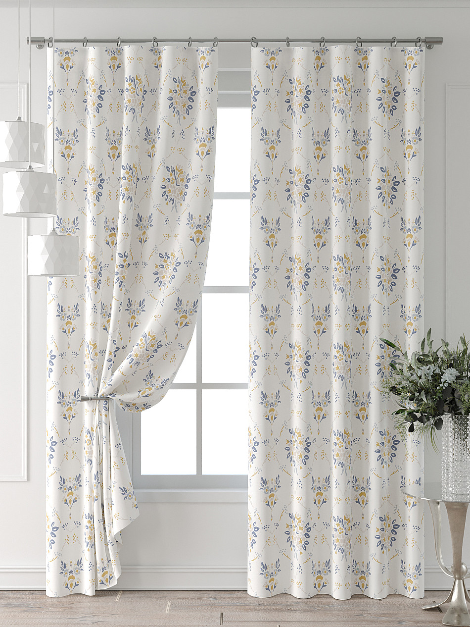 Портьера 2 шт. Подхват - доп.услуга. Комплект штор из легкой портьерной ткани (габардин) оформлен печатным рисунком. Печатный рисунок дает широкие возможности обновить интерьер фактически нет требуя ремонта за счет огромного выбора. Ткани с печатным рисунком безопасны и не содержат токсичных веществ. Не смотря на то что, материал легкий, он имеет высокую плотность, мало загрязнятся и не требует особого ухода даже после стирки, что важно для кухонных занавесок. Шторы не выцветают, не растягиваются, превосходно драпируются, образуя струящиеся складки. Прекрасное решение для создания красоты и уюта с помощью уникальных дизайнов.