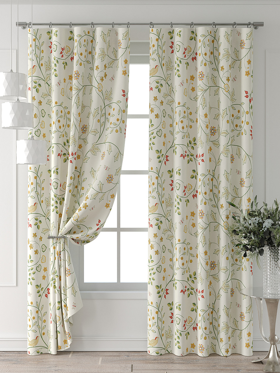 Портьера 2 шт. Подхват - доп.услуга. Комплект штор из легкой портьерной ткани (габардин) оформлен печатным рисунком. Печатный рисунок дает широкие возможности обновить интерьер фактически нет требуя ремонта за счет огромного выбора. Ткани с печатным рисунком безопасны и не содержат токсичных веществ. Не смотря на то что, материал легкий, он имеет высокую плотность, мало загрязнятся и не требует особого ухода даже после стирки, что важно для кухонных занавесок. Шторы не выцветают, не растягиваются, превосходно драпируются, образуя струящиеся складки. Прекрасное решение для создания красоты и уюта с помощью уникальных дизайнов.