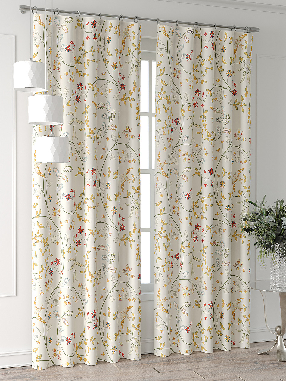 По верхнему краю портьеры пришита шторная тесьма 6 см, с ее помощью затянув узелки от кордовых нитей с обеих сторон и стянув их до нужного размера можно сформировать округлые складки, далее вставить крючки в кармашки и повесить на карниз. Обязательно проверьте кордовые нити – они должны быть надежно завязаны, в противном случае во время стягивания они могут вылететь. Шторная тесьма имеет два ряда кармашков, с их помощью можно регулировать не только длину, но и ширину. Такое крепление подходит для всех типов карнизов.