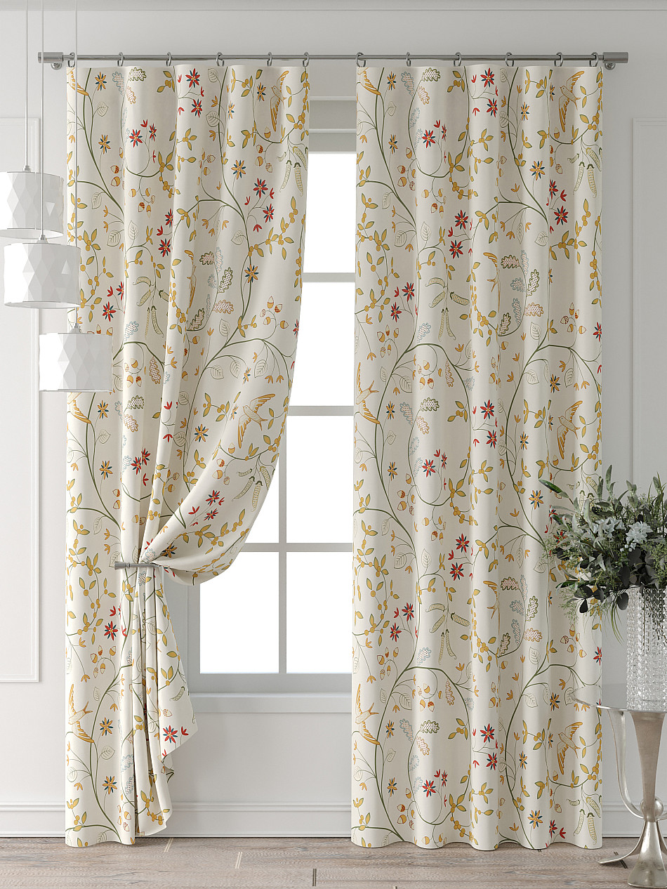Портьера 2 шт. Подхват - доп.услуга. Комплект штор из легкой портьерной ткани (габардин) оформлен печатным рисунком. Печатный рисунок дает широкие возможности обновить интерьер фактически нет требуя ремонта за счет огромного выбора. Ткани с печатным рисунком безопасны и не содержат токсичных веществ. Не смотря на то что, материал легкий, он имеет высокую плотность, мало загрязнятся и не требует особого ухода даже после стирки, что важно для кухонных занавесок. Шторы не выцветают, не растягиваются, превосходно драпируются, образуя струящиеся складки. Прекрасное решение для создания красоты и уюта с помощью уникальных дизайнов.