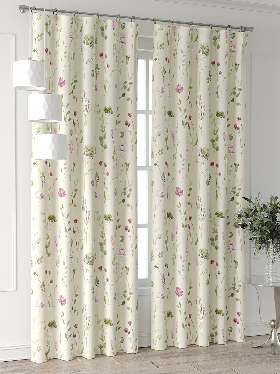 По верхнему краю портьер пришита шторная тесьма 6 см, с ее помощью затянув узелки от кордовых нитей с обеих сторон и стянув их до нужного размера можно сформировать округлые складки, далее вставить крючки в кармашки и повесить на карниз. Обязательно проверьте кордовые нити – они должны быть надежно завязаны, в противном случае во время стягивания они могут вылететь. Шторная тесьма имеет два ряда кармашков, с их помощью можно регулировать не только длину, но и ширину. Такое крепление подходит для всех типов карнизов.
