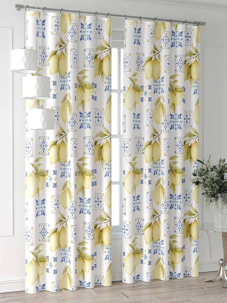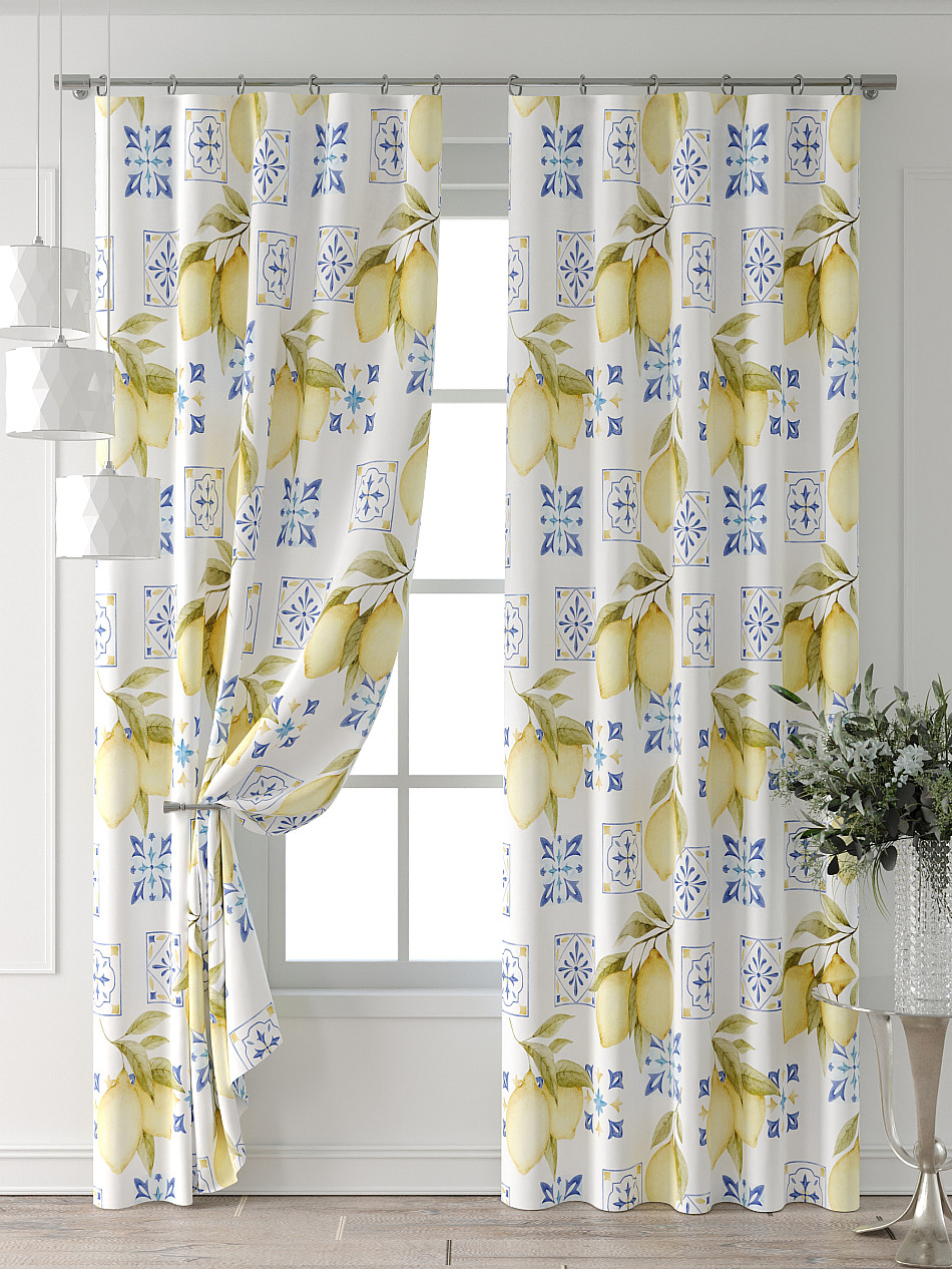 Портьера 2 шт. Подхват - доп.услуга. Комплект штор из легкой портьерной ткани (габардин) оформлен печатным рисунком. Печатный рисунок дает широкие возможности обновить интерьер фактически нет требуя ремонта за счет огромного выбора. Ткани с печатным рисунком безопасны и не содержат токсичных веществ. Не смотря на то что, материал легкий, он имеет высокую плотность, мало загрязнятся и не требует особого ухода даже после стирки, что важно для кухонных занавесок. Шторы не выцветают, не растягиваются, превосходно драпируются, образуя струящиеся складки. Прекрасное решение для создания красоты и уюта с помощью уникальных дизайнов.