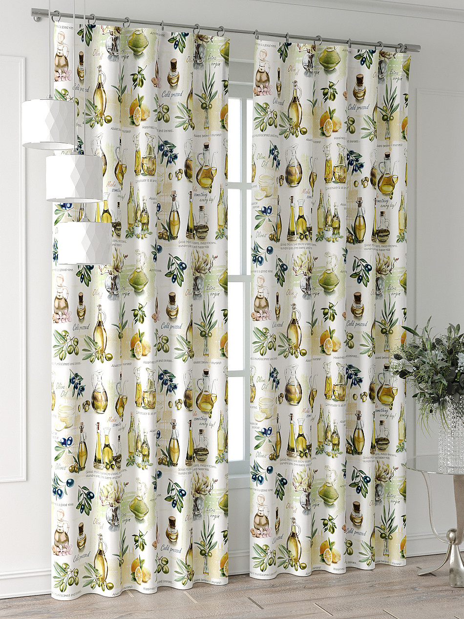 Портьера 2 шт. Подхват - доп.услуга. Комплект штор из легкой портьерной ткани (габардин) оформлен печатным рисунком. Печатный рисунок дает широкие возможности обновить интерьер фактически нет требуя ремонта за счет огромного выбора. Ткани с печатным рисунком безопасны и не содержат токсичных веществ. Не смотря на то что, материал легкий, он имеет высокую плотность, мало загрязнятся и не требует особого ухода даже после стирки, что важно для кухонных занавесок. Шторы не выцветают, не растягиваются, превосходно драпируются, образуя струящиеся складки. Прекрасное решение для создания красоты и уюта с помощью уникальных дизайнов.