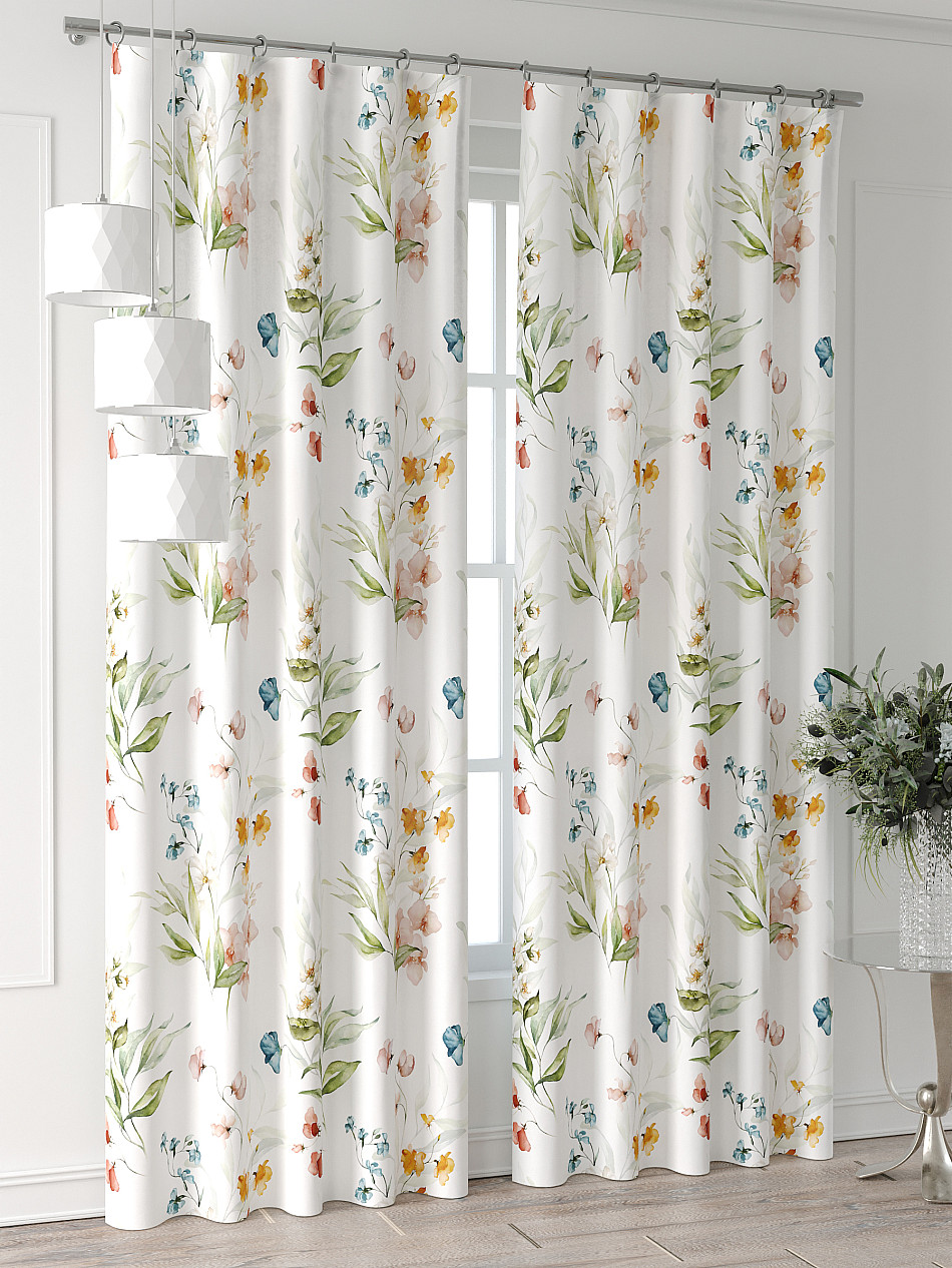 Портьера 2 шт. Подхват - доп.услуга. Комплект штор из легкой портьерной ткани (габардин) оформлен печатным рисунком. Печатный рисунок дает широкие возможности обновить интерьер фактически нет требуя ремонта за счет огромного выбора. Ткани с печатным рисунком безопасны и не содержат токсичных веществ. Не смотря на то что, материал легкий, он имеет высокую плотность, мало загрязнятся и не требует особого ухода даже после стирки, что важно для кухонных занавесок. Шторы не выцветают, не растягиваются, превосходно драпируются, образуя струящиеся складки. Прекрасное решение для создания красоты и уюта с помощью уникальных дизайнов.