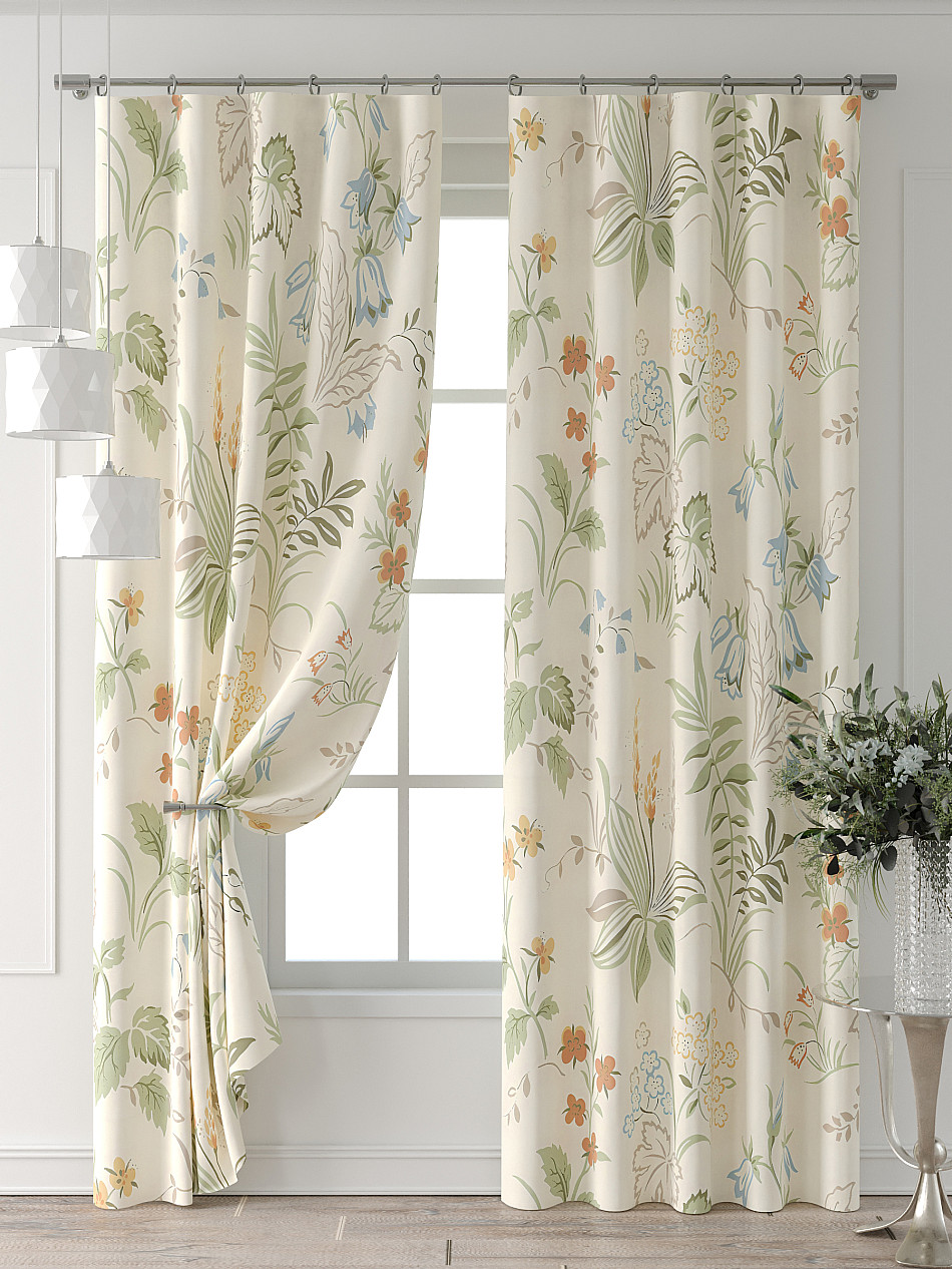 Портьера 2 шт. Подхват - доп.услуга. Комплект штор из легкой портьерной ткани (габардин) оформлен печатным рисунком. Печатный рисунок дает широкие возможности обновить интерьер фактически нет требуя ремонта за счет огромного выбора. Ткани с печатным рисунком безопасны и не содержат токсичных веществ. Не смотря на то что, материал легкий, он имеет высокую плотность, мало загрязнятся и не требует особого ухода даже после стирки, что важно для кухонных занавесок. Шторы не выцветают, не растягиваются, превосходно драпируются, образуя струящиеся складки. Прекрасное решение для создания красоты и уюта с помощью уникальных дизайнов.