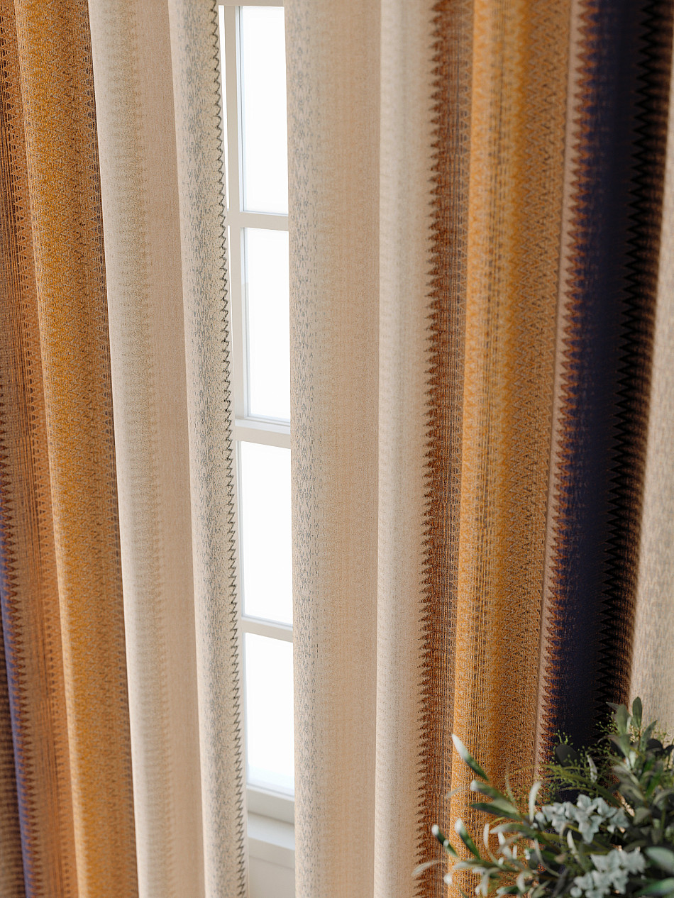 Габардин представляет собой целую группу тканей, которые отличаются содержанием и сочетанием различных волокон – хлопка, шелка, шерсти или синтетики. В зависимости от состава материала, шторы из габардина могут быть разными по плотности и внешнему виду, но всегда отличаются характерным декоративным рубчиком на поверхности. Габардин – идеальная ткань для пошива штор, поскольку она отлично дышит, не мнется, легкая и мягкая на ощупь, но при этом прочная и хорошо защищает от солнечных лучей.