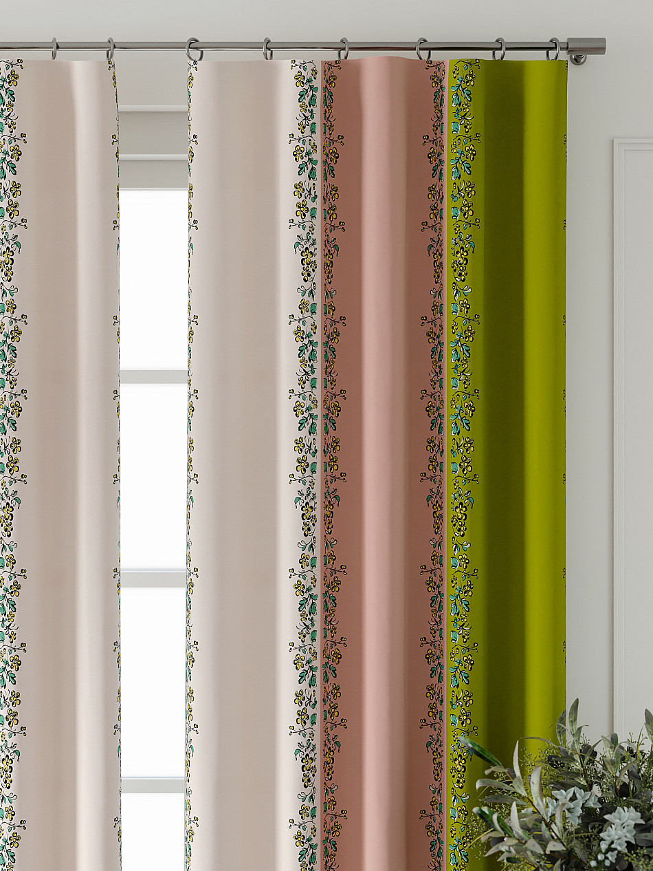 По верхнему краю портьер пришита шторная тесьма 6 см, с ее помощью затянув узелки от кордовых нитей с обеих сторон и стянув их до нужного размера можно сформировать округлые складки, далее вставить крючки в кармашки и повесить на карниз. Обязательно проверьте кордовые нити – они должны быть надежно завязаны, в противном случае во время стягивания они могут вылететь. Шторная тесьма имеет два ряда кармашков, с их помощью можно регулировать не только длину, но и ширину. Такое крепление подходит для всех типов карнизов.