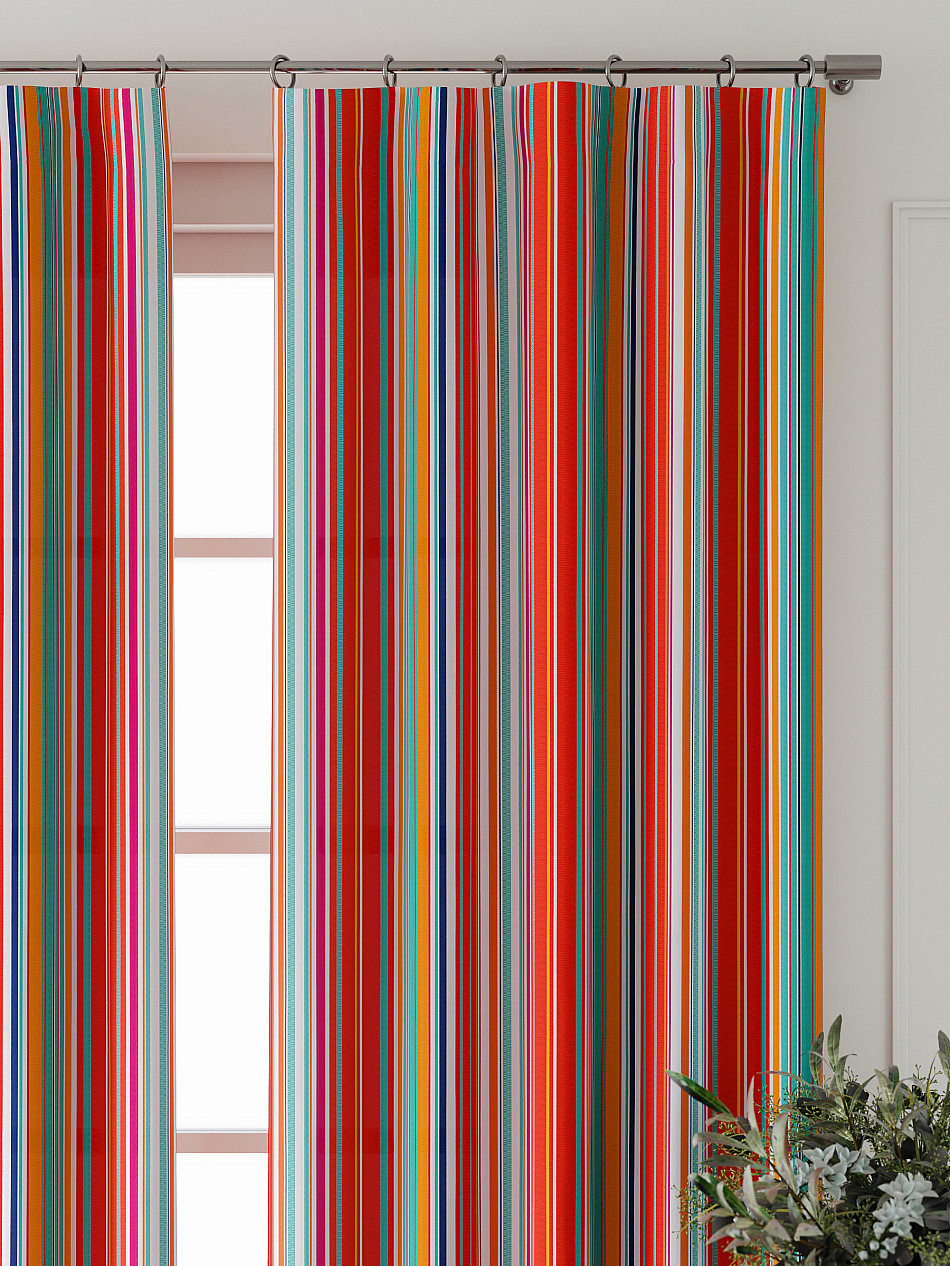 По верхнему краю портьер пришита шторная тесьма 6 см, с ее помощью затянув узелки от кордовых нитей с обеих сторон и стянув их до нужного размера можно сформировать округлые складки, далее вставить крючки в кармашки и повесить на карниз. Обязательно проверьте кордовые нити – они должны быть надежно завязаны, в противном случае во время стягивания они могут вылететь. Шторная тесьма имеет два ряда кармашков, с их помощью можно регулировать не только длину, но и ширину. Такое крепление подходит для всех типов карнизов.