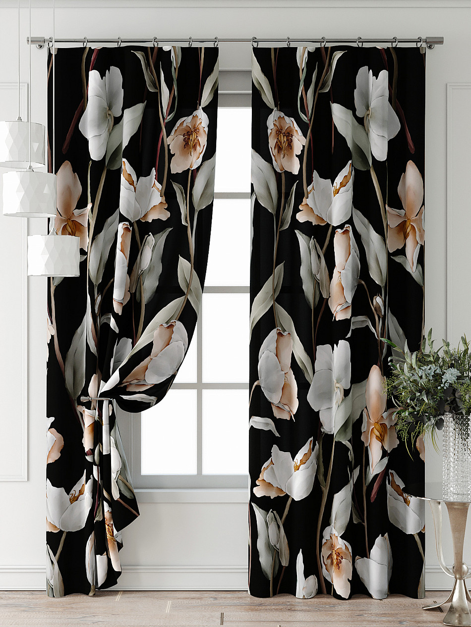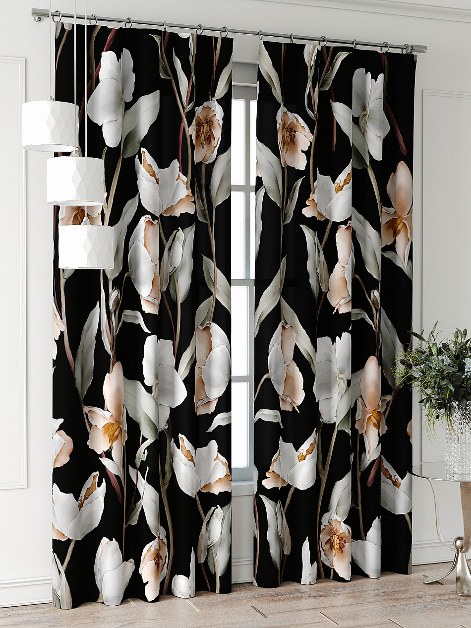 Портьеры 2 шт: Комплект штор из портьерной ткани с печатным рисунком. Фактура ткани прекрасно гармонирует с любым интерьером, а печатный рисунок дает широкие возможности обновить интерьер, фактически не требуя ремонта, за счет огромного выбора. Ткань износостойкая и не требует особого ухода, превосходно драпируется образуя струящиеся складки. Прекрасное решение для создания красоты и уюта с помощью уникальных дизайнов.