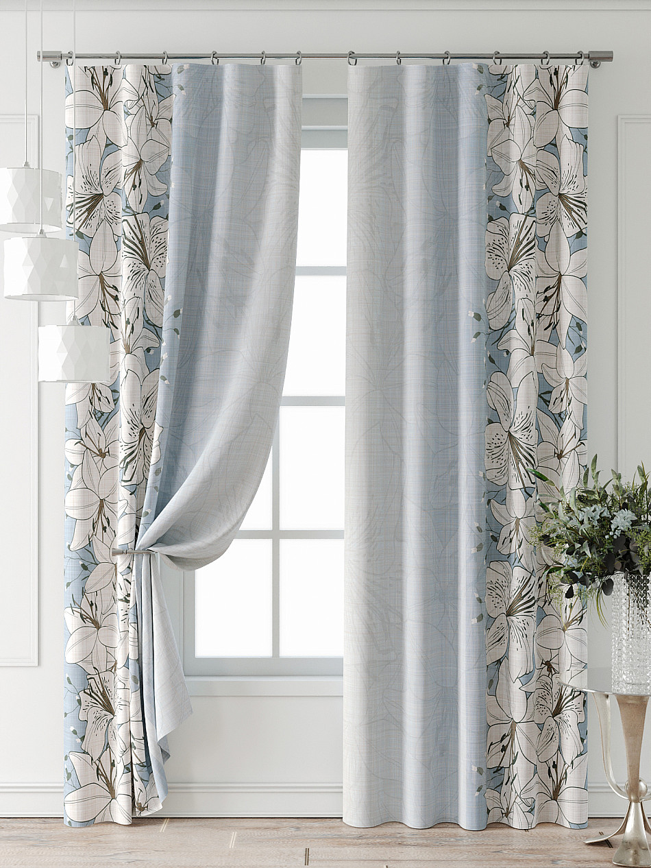 Портьера 150х240 см — 2 шт. ( Изменить высоту) Крепление: шторная лента (крючки), кулиска Подробнее
