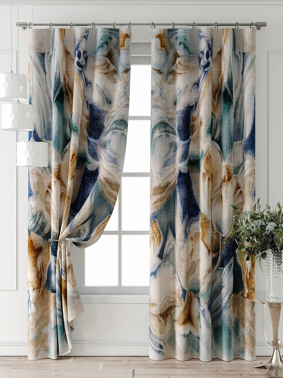 Портьеры 2 шт: Комплект штор из портьерной ткани с печатным рисунком. Фактура ткани прекрасно гармонирует с любым интерьером, а печатный рисунок дает широкие возможности обновить интерьер, фактически не требуя ремонта, за счет огромного выбора. Ткань износостойкая и не требует особого ухода, превосходно драпируется образуя струящиеся складки. Прекрасное решение для создания красоты и уюта с помощью уникальных дизайнов.