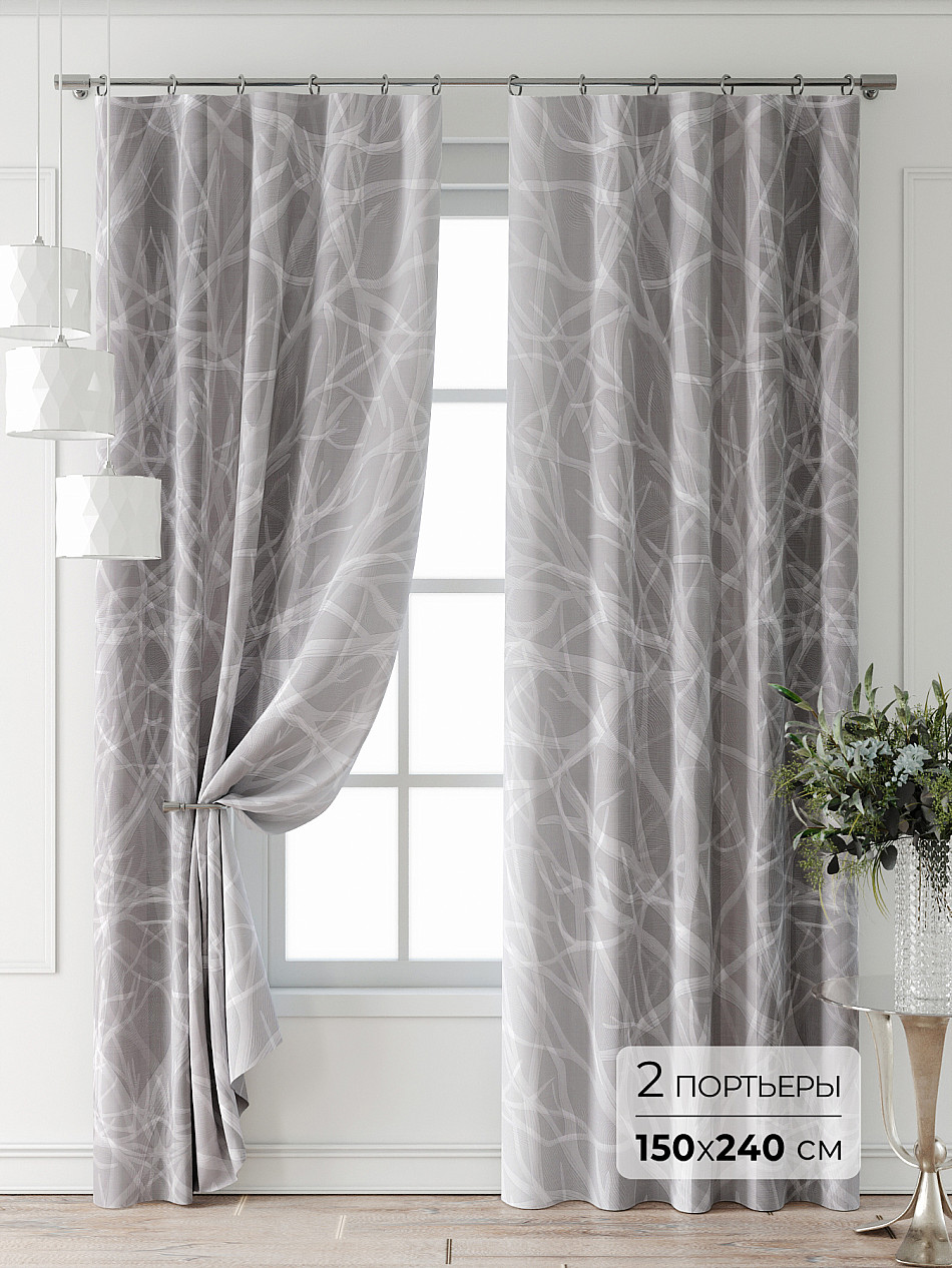 Портьера 150х240 см — 2 шт. ( Изменить высоту) Крепление: шторная лента (крючки), кулиска Подробнее