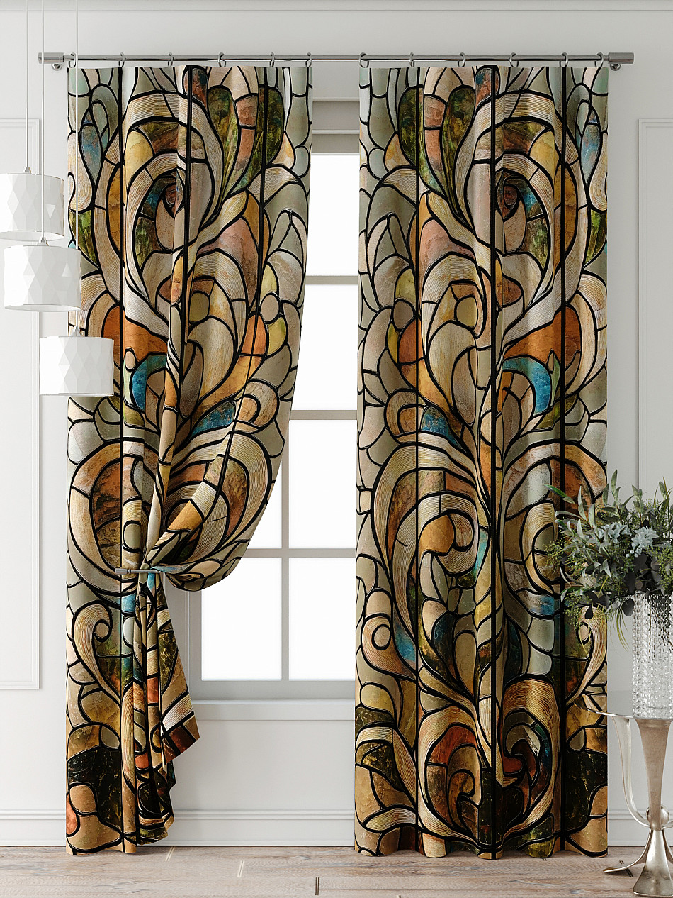 Портьеры 2 шт: Комплект штор из портьерной ткани с печатным рисунком. Фактура ткани прекрасно гармонирует с любым интерьером, а печатный рисунок дает широкие возможности обновить интерьер, фактически не требуя ремонта, за счет огромного выбора. Ткань износостойкая и не требует особого ухода, превосходно драпируется образуя струящиеся складки. Прекрасное решение для создания красоты и уюта с помощью уникальных дизайнов.