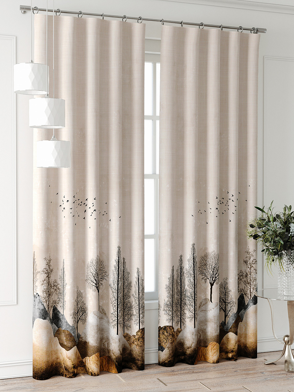 Портьеры 2 шт: Комплект штор из портьерной ткани с печатным рисунком. Фактура ткани прекрасно гармонирует с любым интерьером, а печатный рисунок дает широкие возможности обновить интерьер, фактически не требуя ремонта, за счет огромного выбора. Ткань износостойкая и не требует особого ухода, превосходно драпируется образуя струящиеся складки. Прекрасное решение для создания красоты и уюта с помощью уникальных дизайнов.