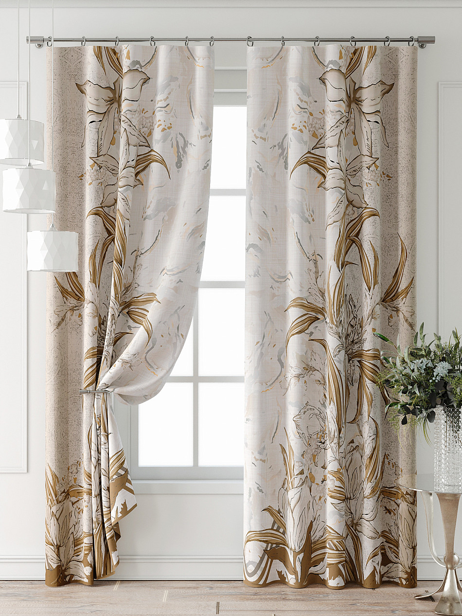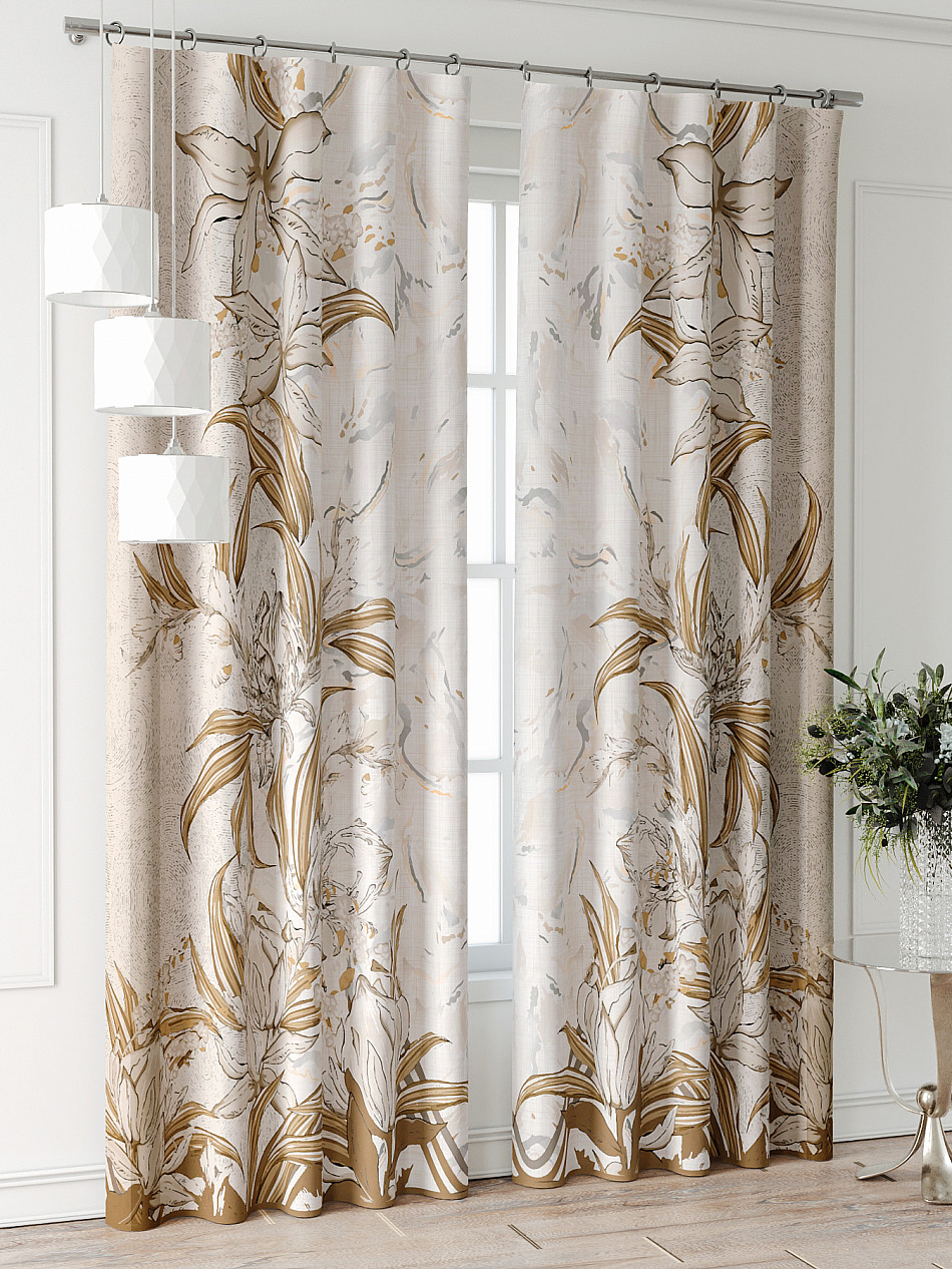 Портьеры 2 шт: Комплект штор из портьерной ткани с печатным рисунком. Фактура ткани прекрасно гармонирует с любым интерьером, а печатный рисунок дает широкие возможности обновить интерьер, фактически не требуя ремонта, за счет огромного выбора. Ткань износостойкая и не требует особого ухода, превосходно драпируется образуя струящиеся складки. Прекрасное решение для создания красоты и уюта с помощью уникальных дизайнов.