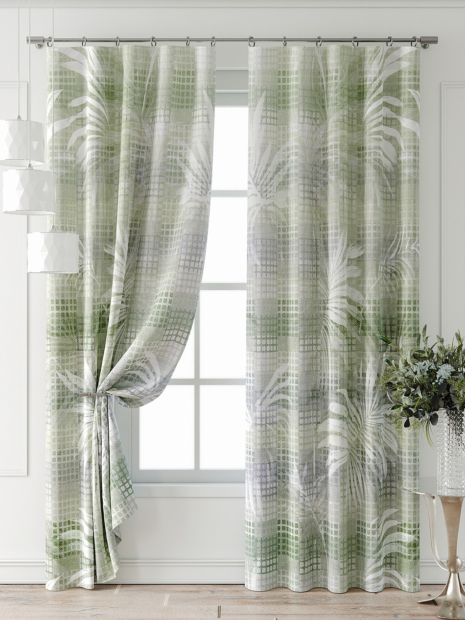 Геометрия Клетка Комбинированные Растения Современный Тропический Фото принтАксессуары для оформления штор:
