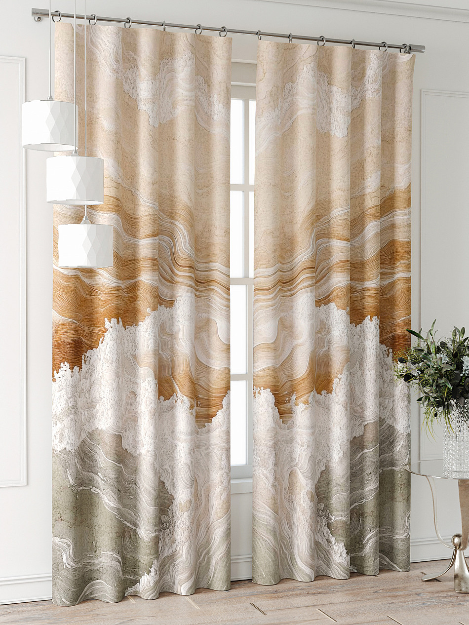 Портьеры 2 шт: Комплект штор из портьерной ткани с печатным рисунком. Фактура ткани прекрасно гармонирует с любым интерьером, а печатный рисунок дает широкие возможности обновить интерьер, фактически не требуя ремонта, за счет огромного выбора. Ткань износостойкая и не требует особого ухода, превосходно драпируется образуя струящиеся складки. Прекрасное решение для создания красоты и уюта с помощью уникальных дизайнов.