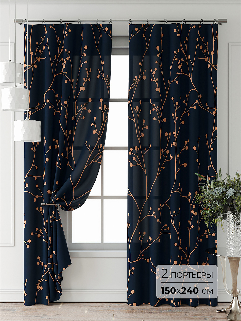 Портьеры 2 шт: Комплект штор из портьерной ткани с печатным рисунком. Фактура ткани прекрасно гармонирует с любым интерьером, а печатный рисунок дает широкие возможности обновить интерьер, фактически не требуя ремонта, за счет огромного выбора. Ткань износостойкая и не требует особого ухода, превосходно драпируется образуя струящиеся складки. Прекрасное решение для создания красоты и уюта с помощью уникальных дизайнов.