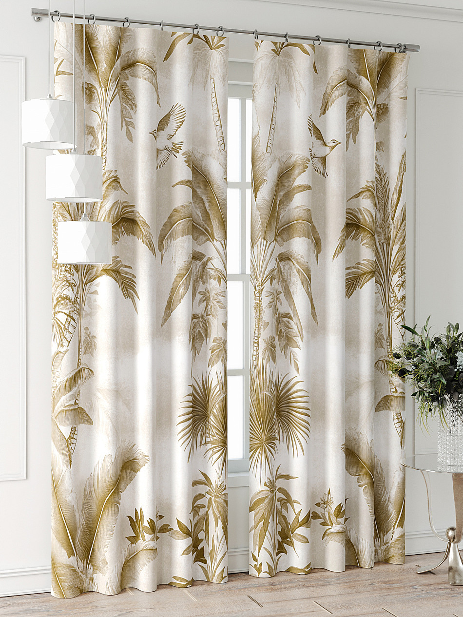 Портьеры 2 шт: Комплект штор из портьерной ткани с печатным рисунком. Фактура ткани прекрасно гармонирует с любым интерьером, а печатный рисунок дает широкие возможности обновить интерьер, фактически не требуя ремонта, за счет огромного выбора. Ткань износостойкая и не требует особого ухода, превосходно драпируется образуя струящиеся складки. Прекрасное решение для создания красоты и уюта с помощью уникальных дизайнов.