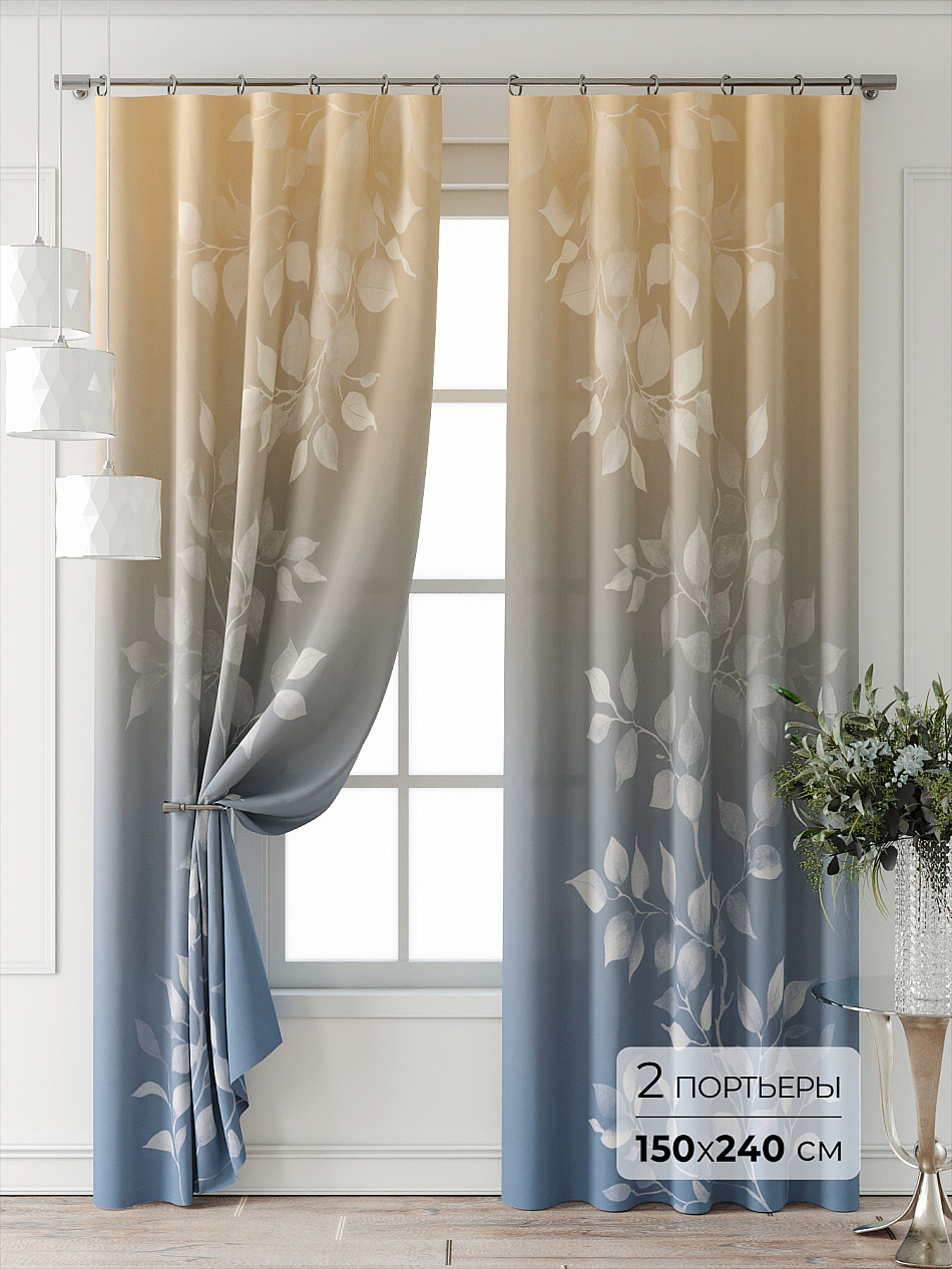 Портьеры 2 шт: Комплект штор из портьерной ткани с печатным рисунком. Фактура ткани прекрасно гармонирует с любым интерьером, а печатный рисунок дает широкие возможности обновить интерьер, фактически не требуя ремонта, за счет огромного выбора. Ткань износостойкая и не требует особого ухода, превосходно драпируется образуя струящиеся складки. Прекрасное решение для создания красоты и уюта с помощью уникальных дизайнов.