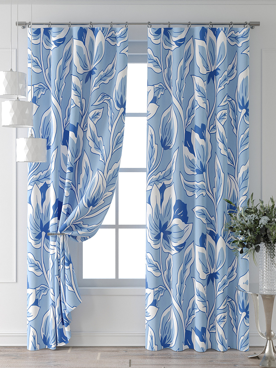 Портьера 2 шт. Подхват - доп.услуга. Комплект штор из легкой портьерной ткани (габардин) оформлен печатным рисунком. Печатный рисунок дает широкие возможности обновить интерьер фактически нет требуя ремонта за счет огромного выбора. Ткани с печатным рисунком безопасны и не содержат токсичных веществ. Не смотря на то что, материал легкий, он имеет высокую плотность, мало загрязнятся и не требует особого ухода даже после стирки, что важно для кухонных занавесок. Шторы не выцветают, не растягиваются, превосходно драпируются, образуя струящиеся складки. Прекрасное решение для создания красоты и уюта с помощью уникальных дизайнов.
