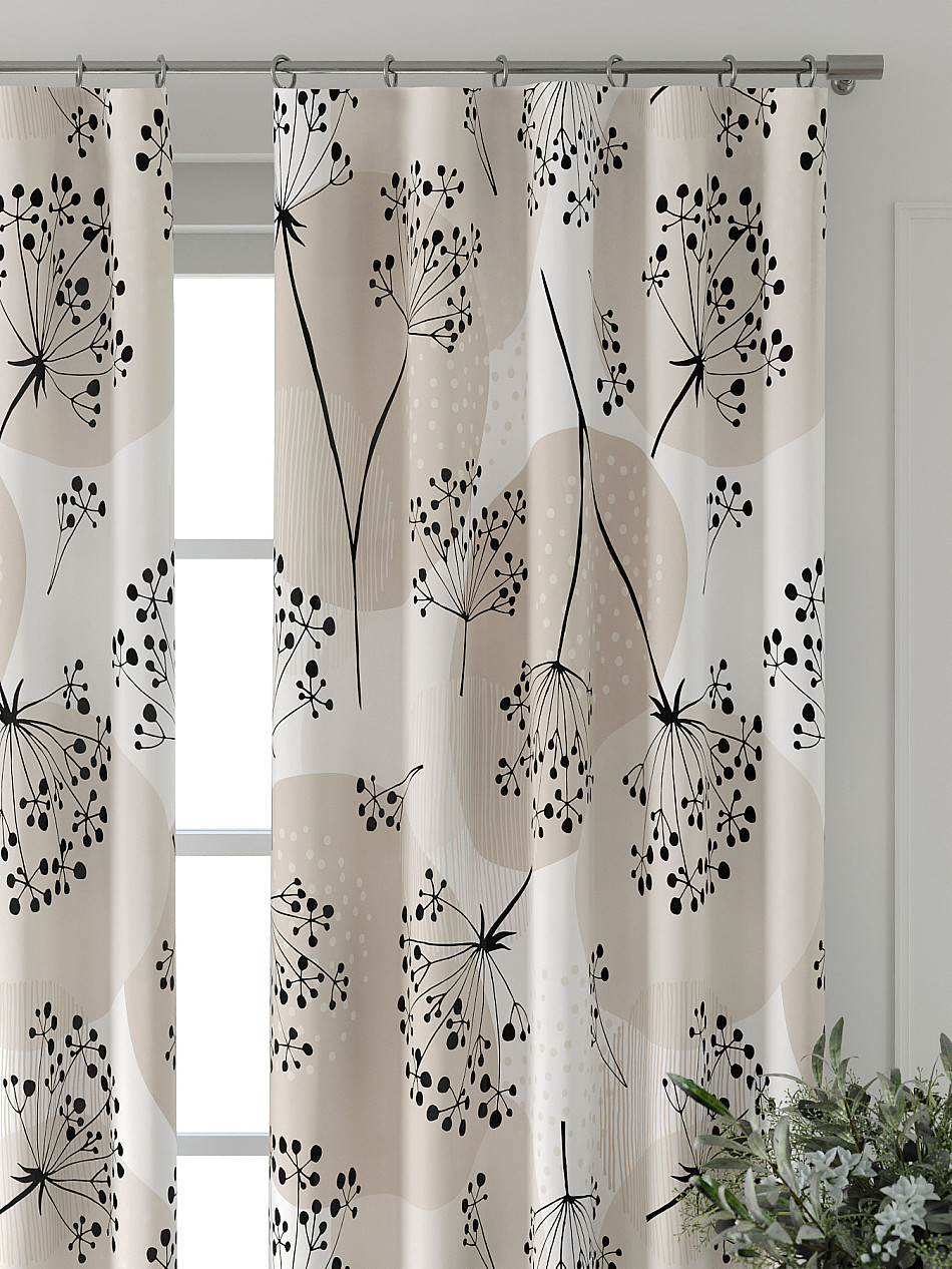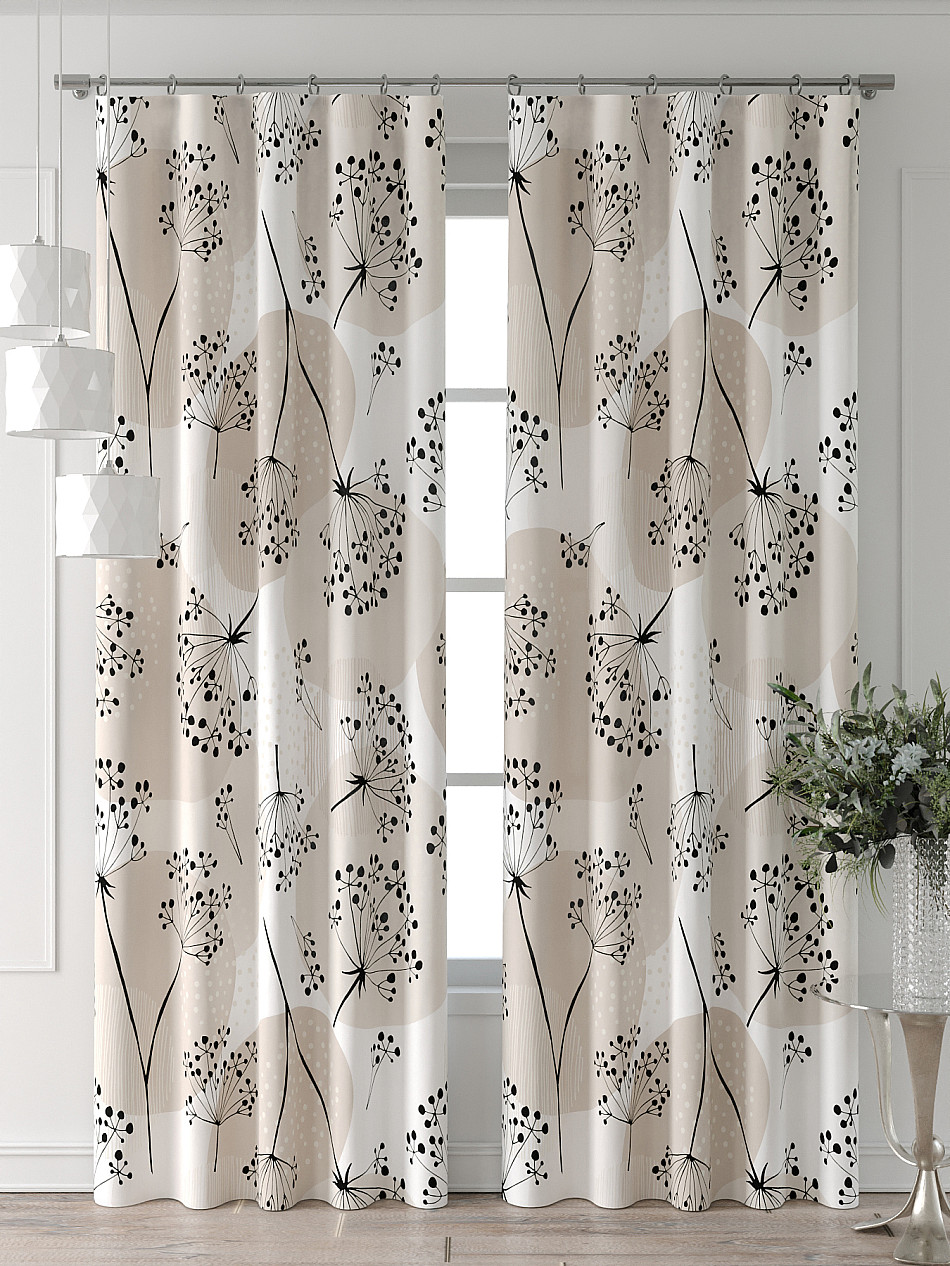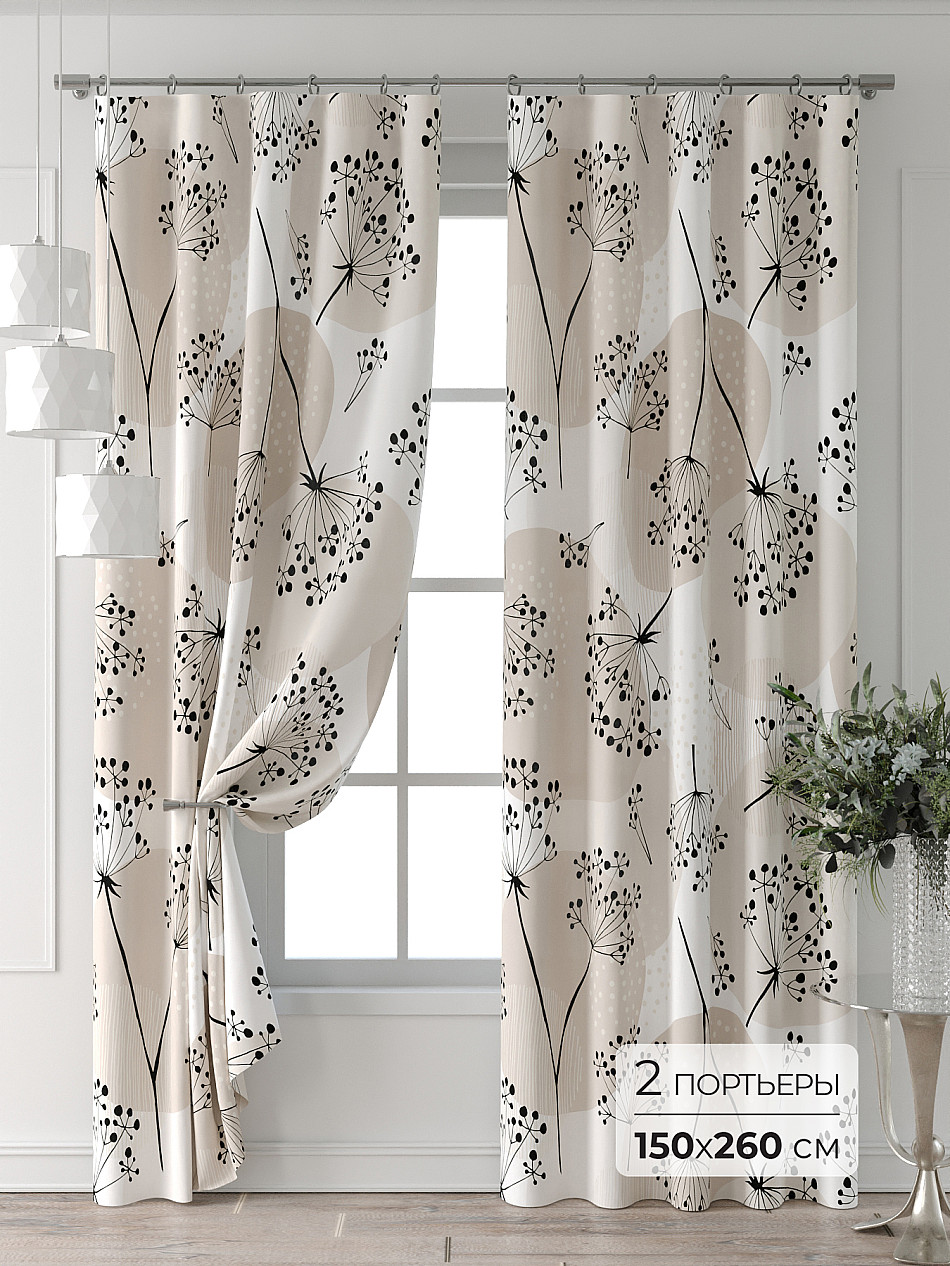 Портьера 2 шт. Подхват - доп.услуга. Комплект штор из легкой портьерной ткани (габардин) оформлен печатным рисунком. Печатный рисунок дает широкие возможности обновить интерьер фактически нет требуя ремонта за счет огромного выбора. Ткани с печатным рисунком безопасны и не содержат токсичных веществ. Не смотря на то что, материал легкий, он имеет высокую плотность, мало загрязнятся и не требует особого ухода даже после стирки, что важно для кухонных занавесок. Шторы не выцветают, не растягиваются, превосходно драпируются, образуя струящиеся складки. Прекрасное решение для создания красоты и уюта с помощью уникальных дизайнов.