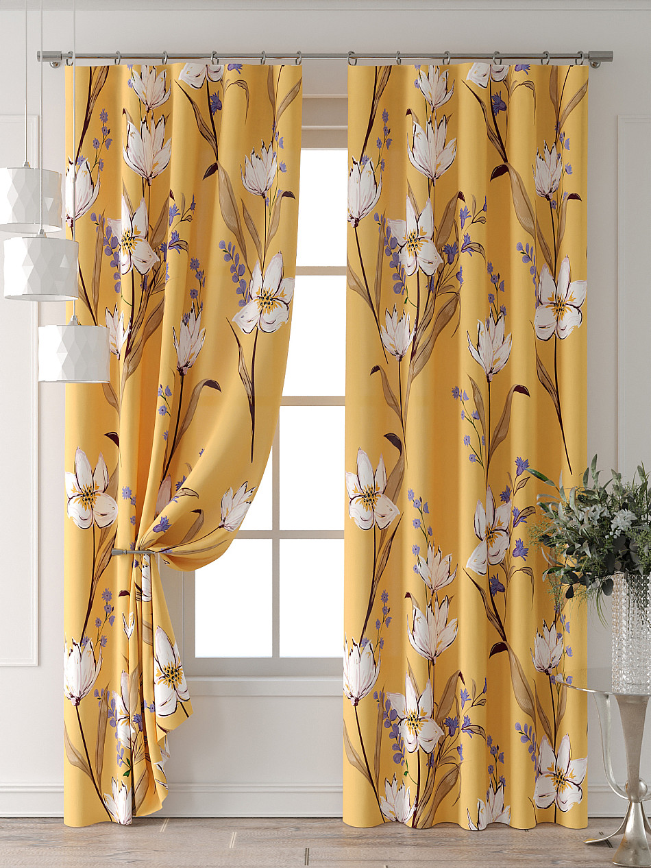Портьера 2 шт. Подхват - доп.услуга. Комплект штор из легкой портьерной ткани (габардин) оформлен печатным рисунком. Печатный рисунок дает широкие возможности обновить интерьер фактически нет требуя ремонта за счет огромного выбора. Ткани с печатным рисунком безопасны и не содержат токсичных веществ. Не смотря на то что, материал легкий, он имеет высокую плотность, мало загрязнятся и не требует особого ухода даже после стирки, что важно для кухонных занавесок. Шторы не выцветают, не растягиваются, превосходно драпируются, образуя струящиеся складки. Прекрасное решение для создания красоты и уюта с помощью уникальных дизайнов.
