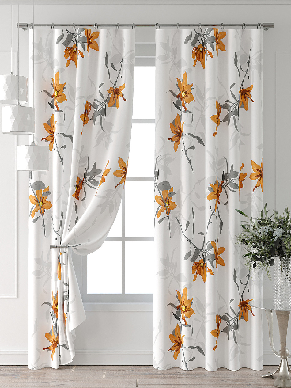 Портьера 2 шт. Подхват - доп.услуга. Комплект штор из легкой портьерной ткани (габардин) оформлен печатным рисунком. Печатный рисунок дает широкие возможности обновить интерьер фактически нет требуя ремонта за счет огромного выбора. Ткани с печатным рисунком безопасны и не содержат токсичных веществ. Не смотря на то что, материал легкий, он имеет высокую плотность, мало загрязнятся и не требует особого ухода даже после стирки, что важно для кухонных занавесок. Шторы не выцветают, не растягиваются, превосходно драпируются, образуя струящиеся складки. Прекрасное решение для создания красоты и уюта с помощью уникальных дизайнов.