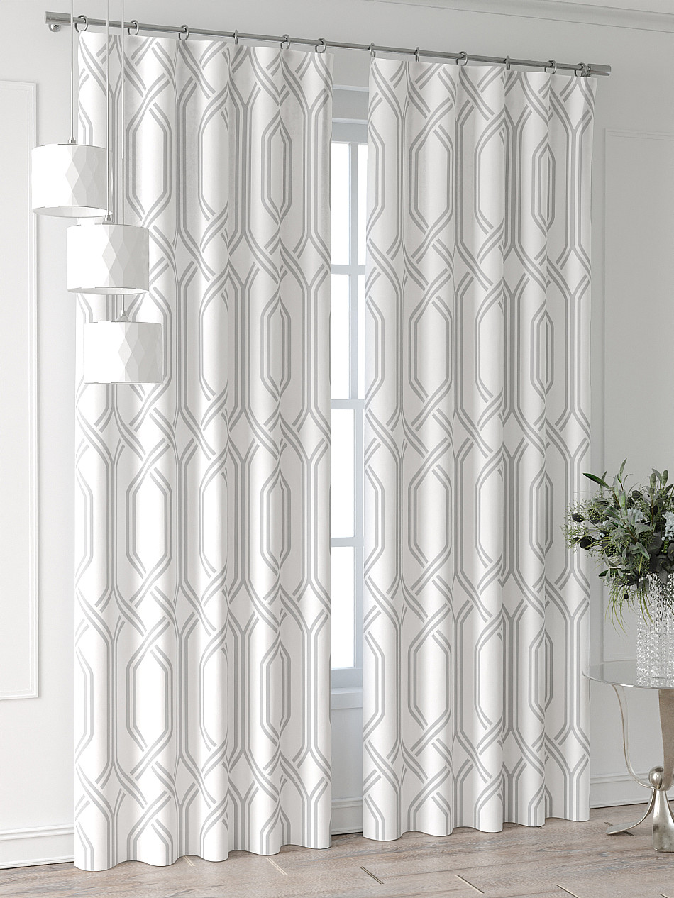 По верхнему краю портьеры пришита шторная тесьма 6 см, с ее помощью затянув узелки от кордовых нитей с обеих сторон и стянув их до нужного размера можно сформировать округлые складки, далее вставить крючки в кармашки и повесить на карниз. Обязательно проверьте кордовые нити – они должны быть надежно завязаны, в противном случае во время стягивания они могут вылететь. Шторная тесьма имеет два ряда кармашков, с их помощью можно регулировать не только длину, но и ширину. Такое крепление подходит для всех типов карнизов.