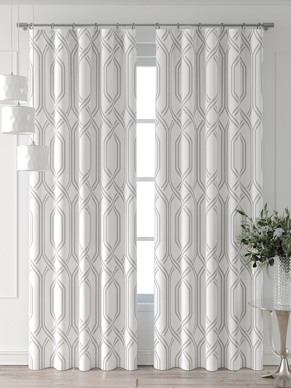 По верхнему краю портьер пришита шторная тесьма 6 см, с ее помощью затянув узелки от кордовых нитей с обеих сторон и стянув их до нужного размера можно сформировать округлые складки, далее вставить крючки в кармашки и повесить на карниз. Обязательно проверьте кордовые нити – они должны быть надежно завязаны, в противном случае во время стягивания они могут вылететь. Шторная тесьма имеет два ряда кармашков, с их помощью можно регулировать не только длину, но и ширину. Такое крепление подходит для всех типов карнизов.
