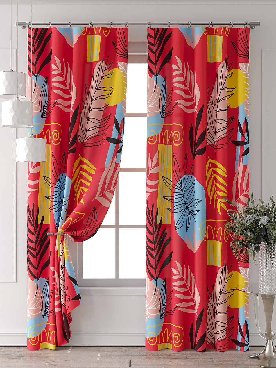 Портьера 2 шт. Подхват - доп.услуга. Комплект штор из легкой портьерной ткани (габардин) оформлен печатным рисунком. Печатный рисунок дает широкие возможности обновить интерьер фактически нет требуя ремонта за счет огромного выбора. Ткани с печатным рисунком безопасны и не содержат токсичных веществ. Не смотря на то что, материал легкий, он имеет высокую плотность, мало загрязнятся и не требует особого ухода даже после стирки, что важно для кухонных занавесок. Шторы не выцветают, не растягиваются, превосходно драпируются, образуя струящиеся складки. Прекрасное решение для создания красоты и уюта с помощью уникальных дизайнов.