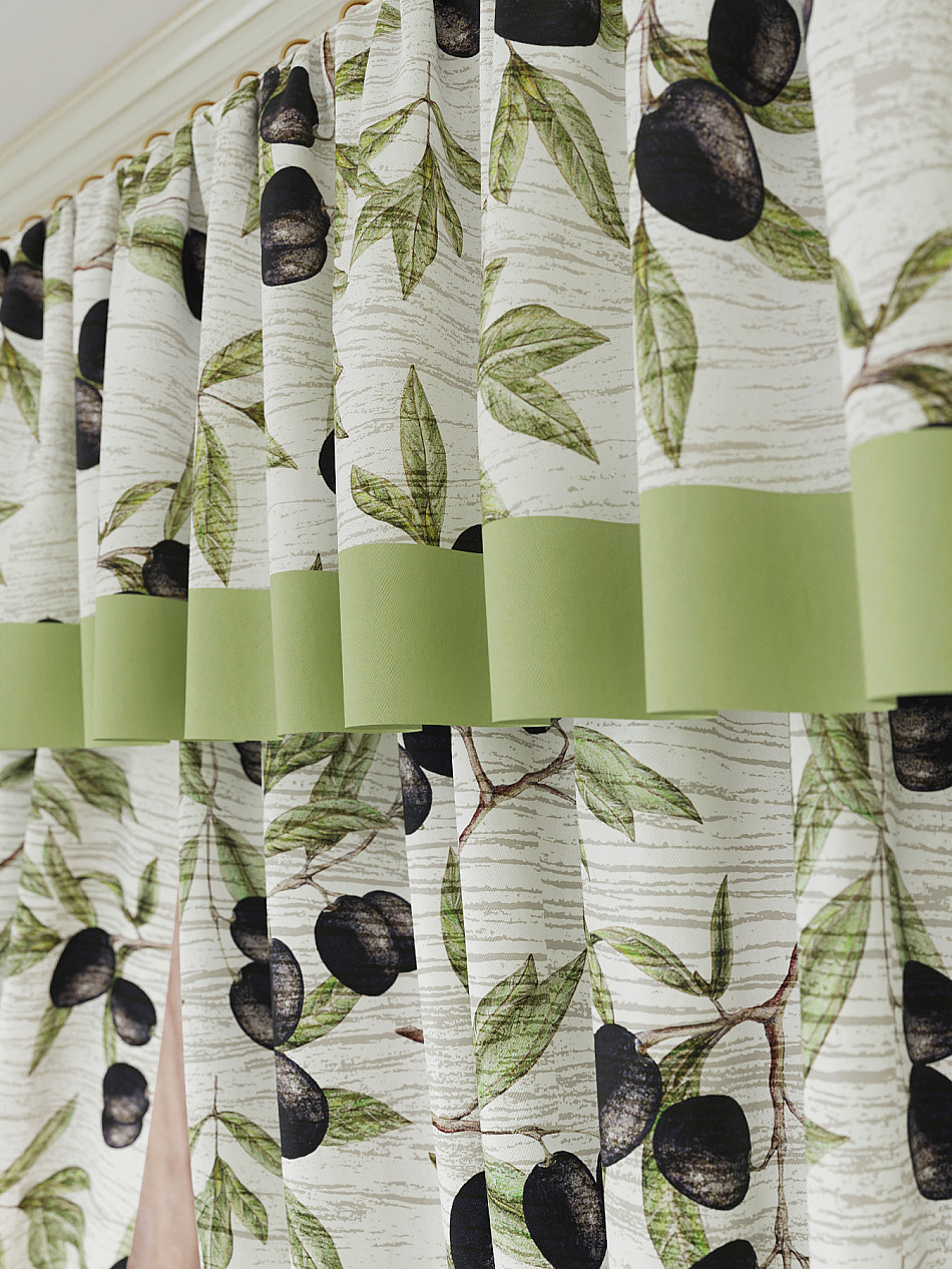 Ламбрекен: легкая основа (Габардин). Ширина — 300 см, высота — 40 см, крепление — шторная лента (крючки).