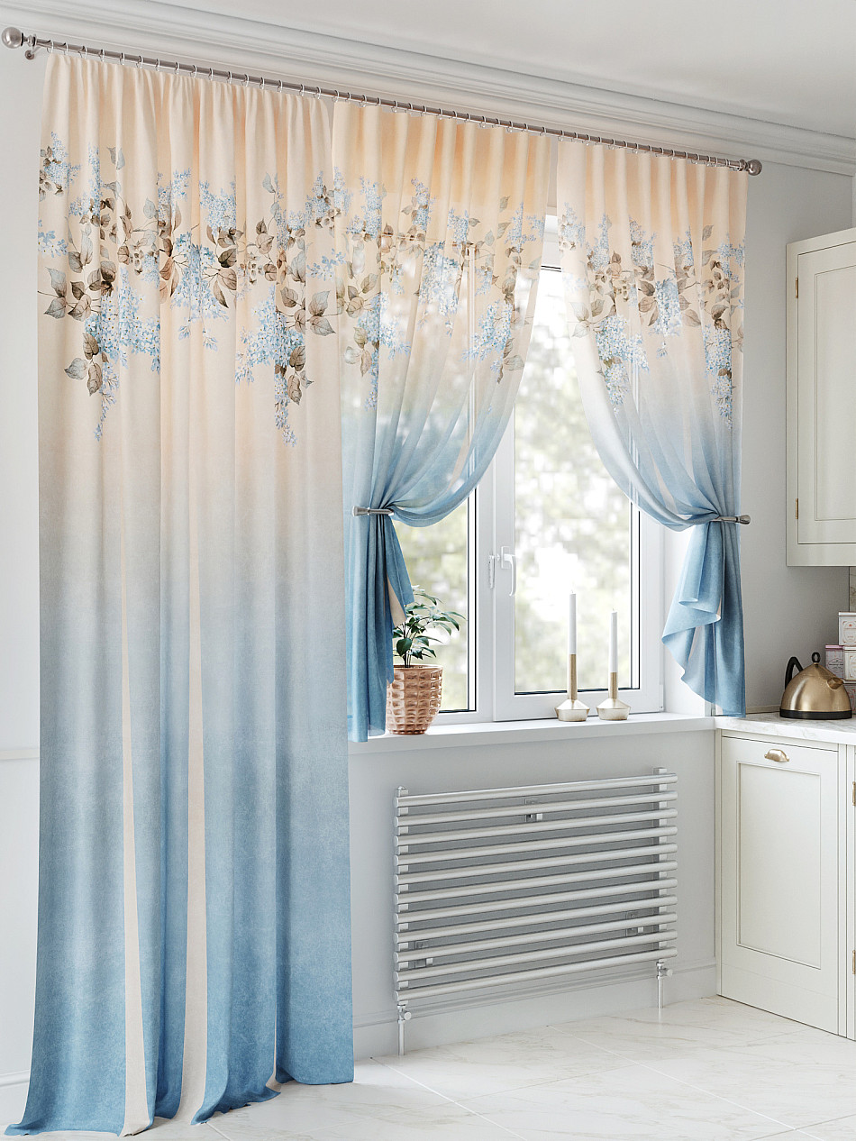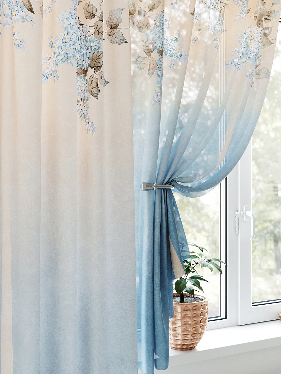 Портьера 150х230 см. — 1 шт., вуаль 150х180 см — 2 шт. ( Уменьшить высоту ) Крепление: шторная лента (крючки), кулиска Подробнее