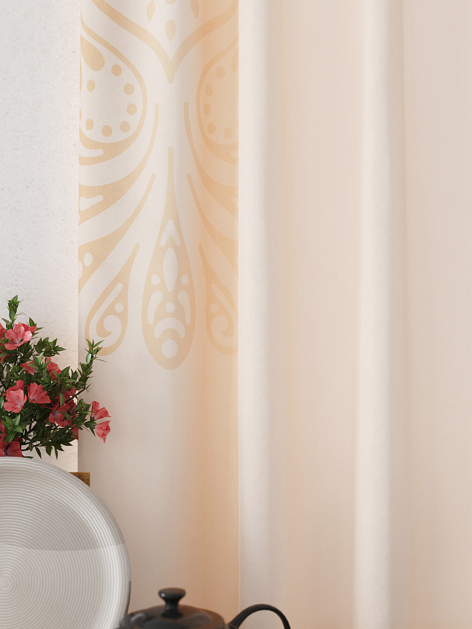 Портьеры 2 шт: Комплект штор из легкой портьерной ткани (габардин) оформлен печатным рисунком. Печатный рисунок дает широкие возможности обновить интерьер фактически нет требуя ремонта за счет огромного выбора. Ткани с печатным рисунком безопасны и не содержат токсичных веществ. Не смотря на то что, материал легкий, он имеет высокую плотность, мало загрязнятся и не требует особого ухода даже после стирки, что важно для кухонных занавесок. Шторы не выцветают, не растягиваются, превосходно драпируются, образуя струящиеся складки. Прекрасное решение для создания красоты и уюта с помощью уникальных дизайнов.
