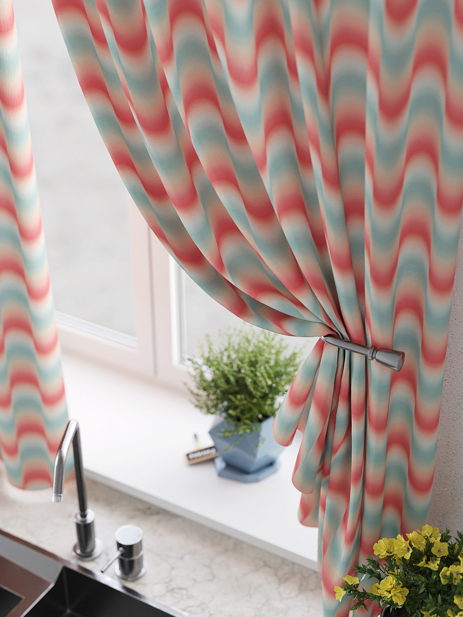 Портьеры 2 шт: Комплект штор из легкой портьерной ткани (габардин) оформлен печатным рисунком. Печатный рисунок дает широкие возможности обновить интерьер фактически нет требуя ремонта за счет огромного выбора. Ткани с печатным рисунком безопасны и не содержат токсичных веществ. Не смотря на то что, материал легкий, он имеет высокую плотность, мало загрязнятся и не требует особого ухода даже после стирки, что важно для кухонных занавесок. Шторы не выцветают, не растягиваются, превосходно драпируются, образуя струящиеся складки. Прекрасное решение для создания красоты и уюта с помощью уникальных дизайнов.