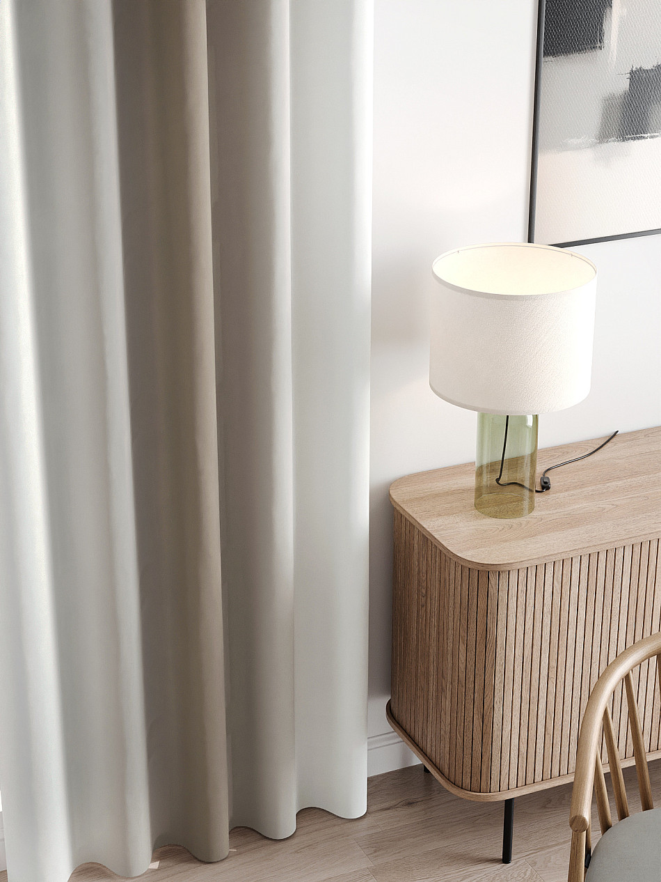 Габардин представляет собой целую группу тканей, которые отличаются содержанием и сочетанием различных волокон – хлопка, шелка, шерсти или синтетики. В зависимости от состава материала, шторы из габардина могут быть разными по плотности и внешнему виду, но всегда отличаются характерным декоративным рубчиком на поверхности. Габардин – идеальная ткань для пошива штор, поскольку она отлично дышит, не мнется, легкая и мягкая на ощупь, но при этом прочная и хорошо защищает от солнечных лучей.