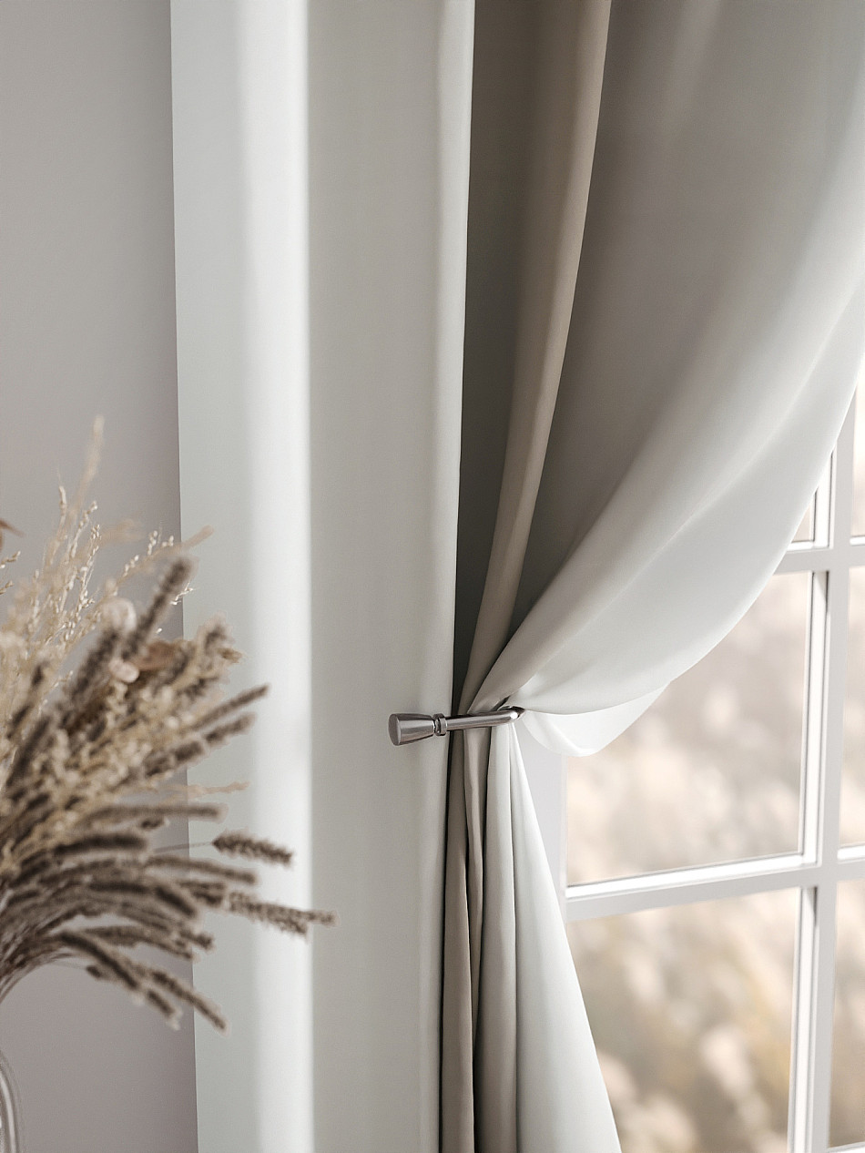 По верхнему краю портьеры пришита шторная тесьма 6 см, с ее помощью затянув узелки от кордовых нитей с обеих сторон и стянув их до нужного размера можно сформировать округлые складки, далее вставить крючки в кармашки и повесить на карниз. Обязательно проверьте кордовые нити – они должны быть надежно завязаны, в противном случае во время стягивания они могут вылететь. Шторная тесьма имеет два ряда кармашков, с их помощью можно регулировать не только длину, но и ширину. Такое крепление подходит для всех типов карнизов.