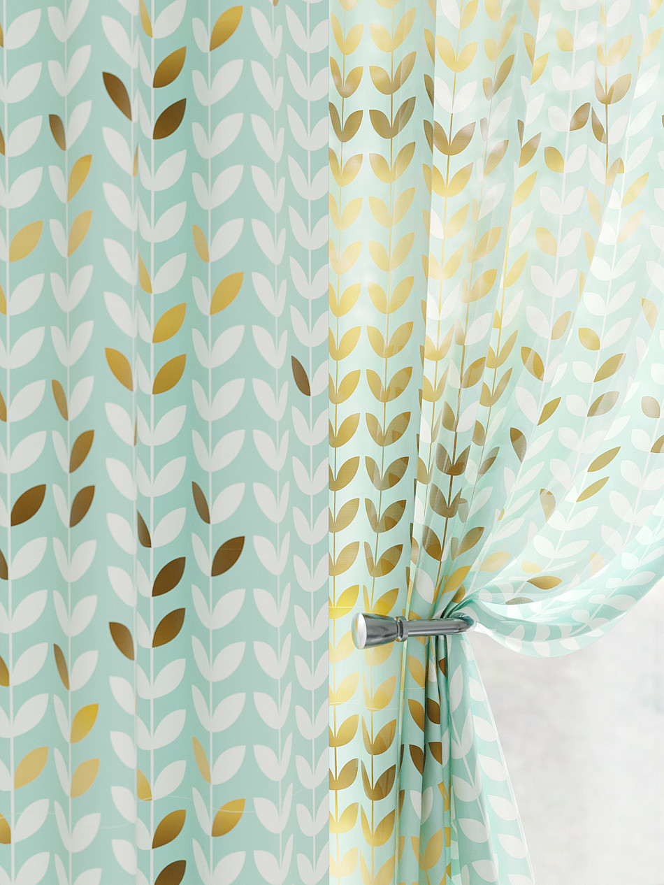 Тюль 2 шт.: Легкая основа (вуаль) оформлена флористическим рисунком. Ширина — 150 см., высота — 180 см., крепление — шторная лента (крючки).