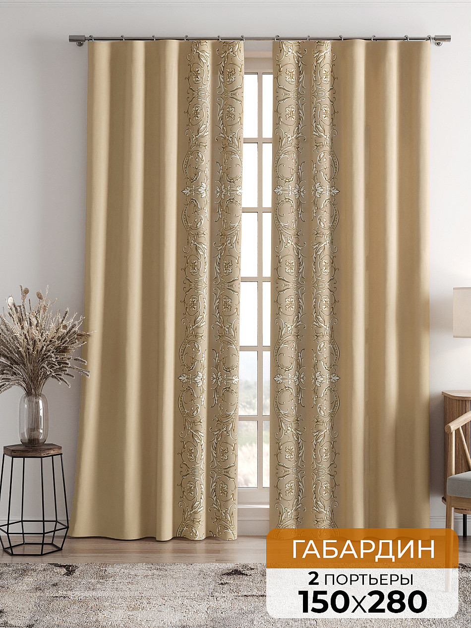 Портьера 2 шт. — 150х280 см. ( Уменьшить высоту ) Крепление: шторная лента (крючки), кулиска Подробнее