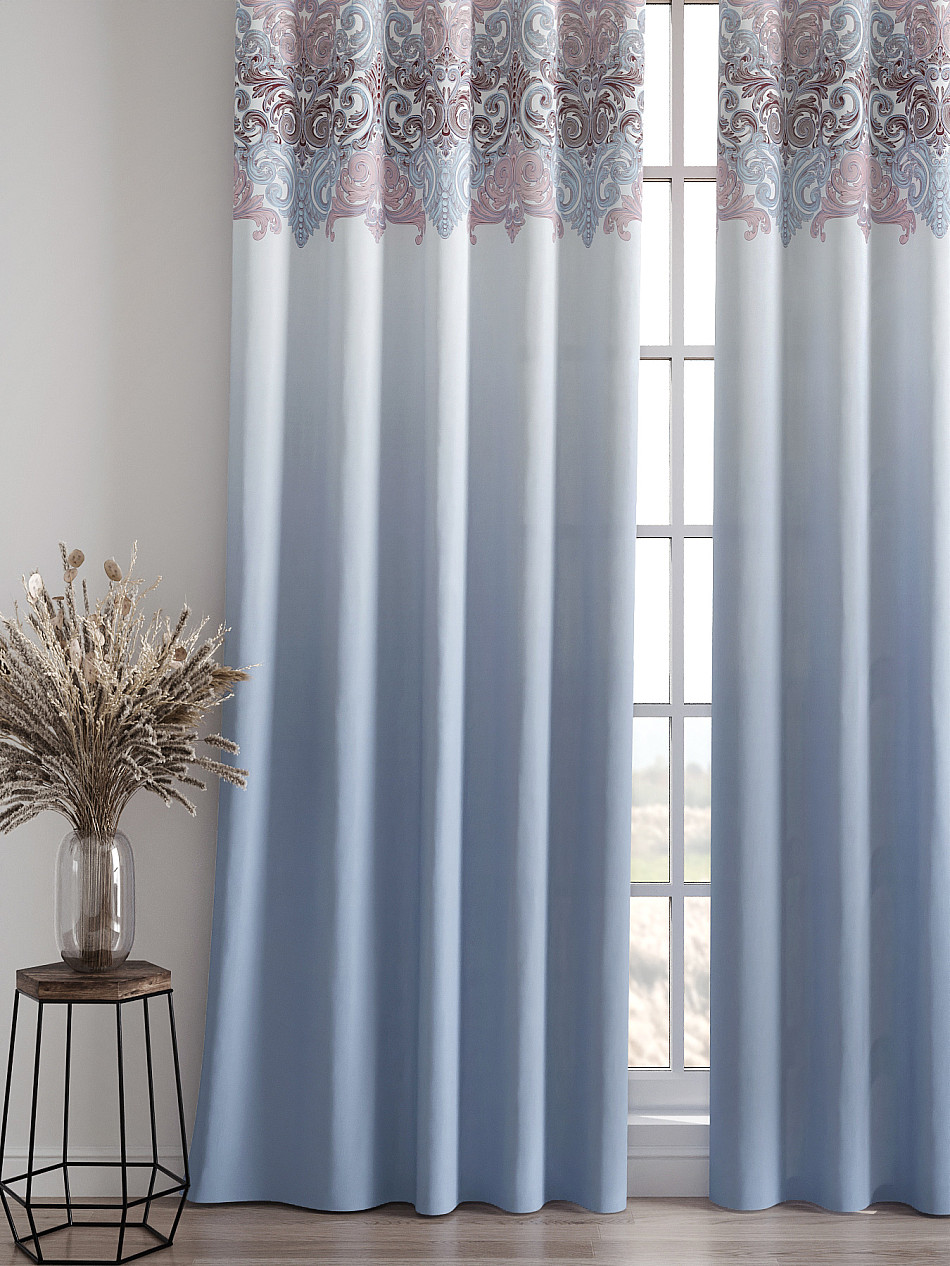 Комплект штор из легкой портьерной ткани (габардин) оформлен печатным рисунком. Печатный рисунок дает широкие возможности обновить интерьер фактически нет требуя ремонта за счет огромного выбора. Ткани с печатным рисунком безопасны и не содержат токсичных веществ. Не смотря на то что, материал легкий, он имеет высокую плотность, мало загрязнятся и не требует особого ухода даже после стирки, что важно для кухонных занавесок. Шторы не выцветают, не растягиваются, превосходно драпируются, образуя струящиеся складки. Прекрасное решение для создания красоты и уюта с помощью уникальных дизайнов.