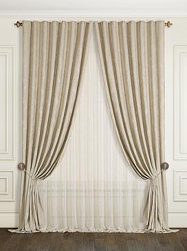 Портьера 200х290 см. — 2 шт., тюль 300х290 см. — 1 шт. Крепление: шторная лента (крючки), кулиска Подробнее